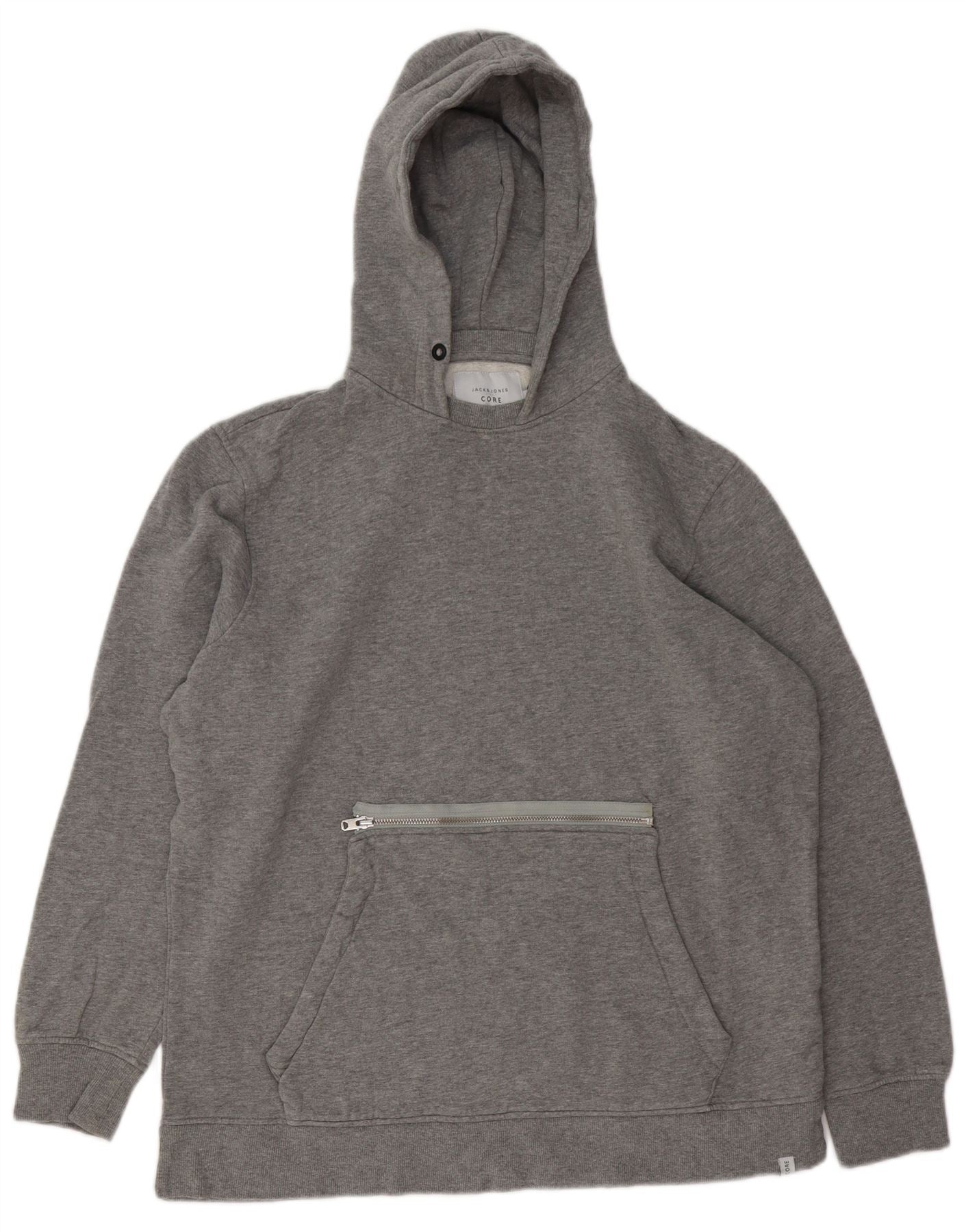 JACK & JONES Mens Graphic Hoodie Jumper Large Grey Cotton