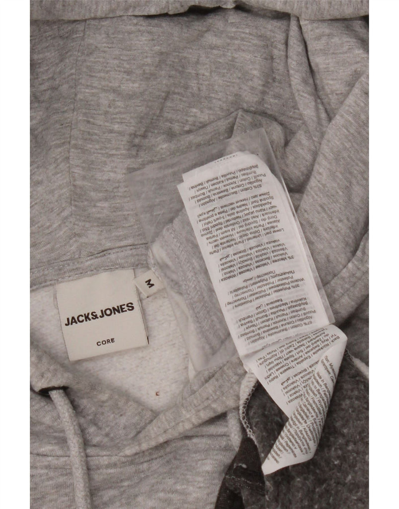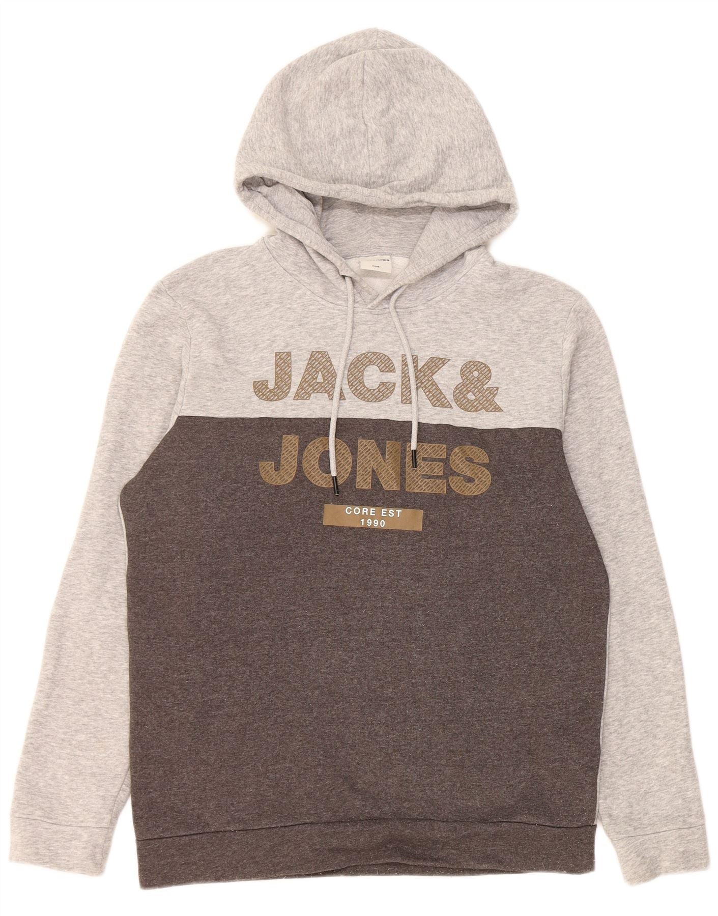 JACK & JONES Mens Graphic Hoodie Jumper Medium Grey Colourblock Cotton
