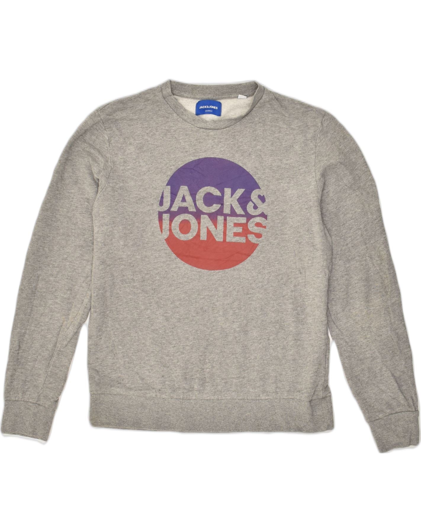 JACK & JONES Mens Graphic Sweatshirt Jumper Medium Grey Cotton