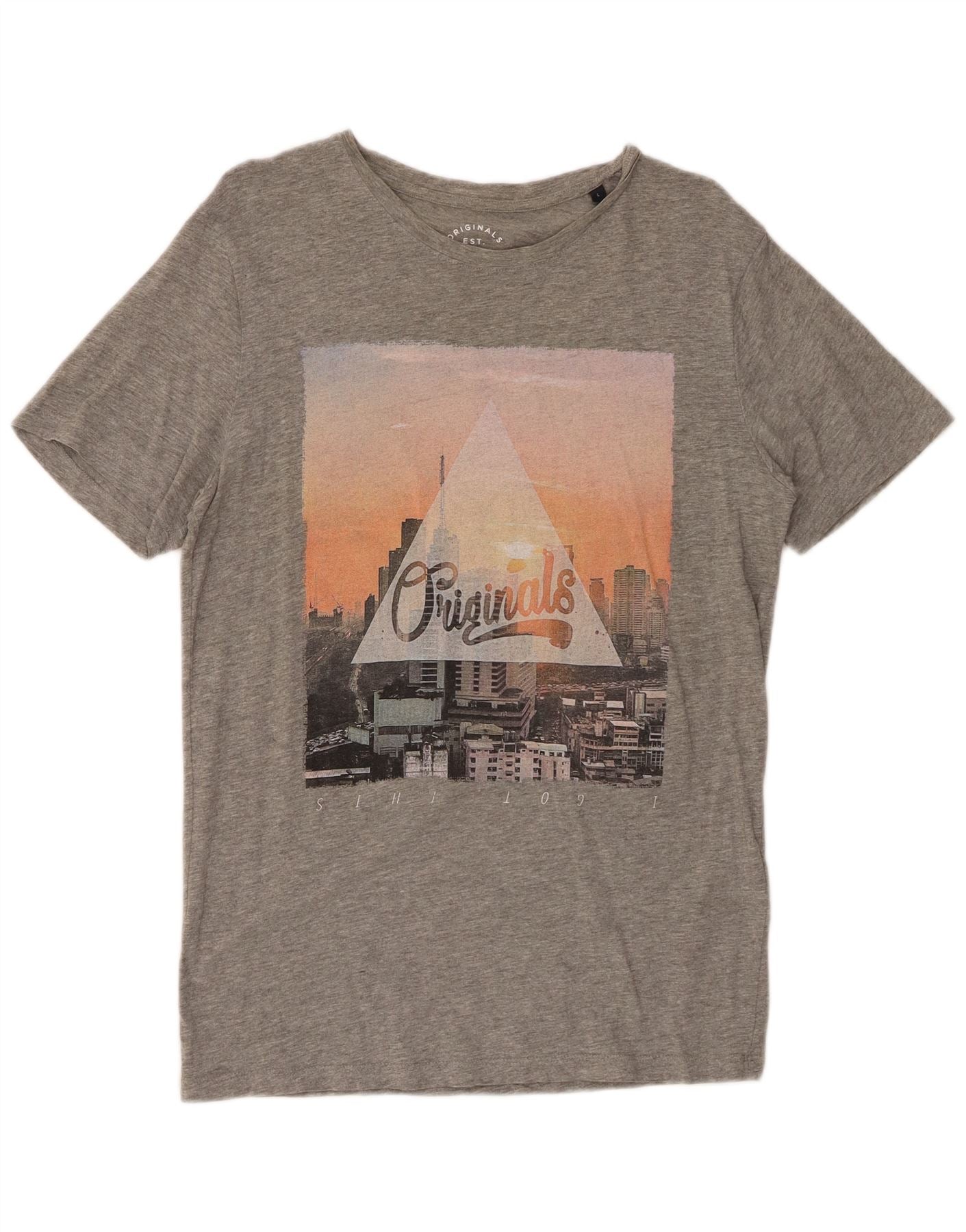 JACK & JONES Mens Graphic T-Shirt Top Large Grey Flecked Cotton