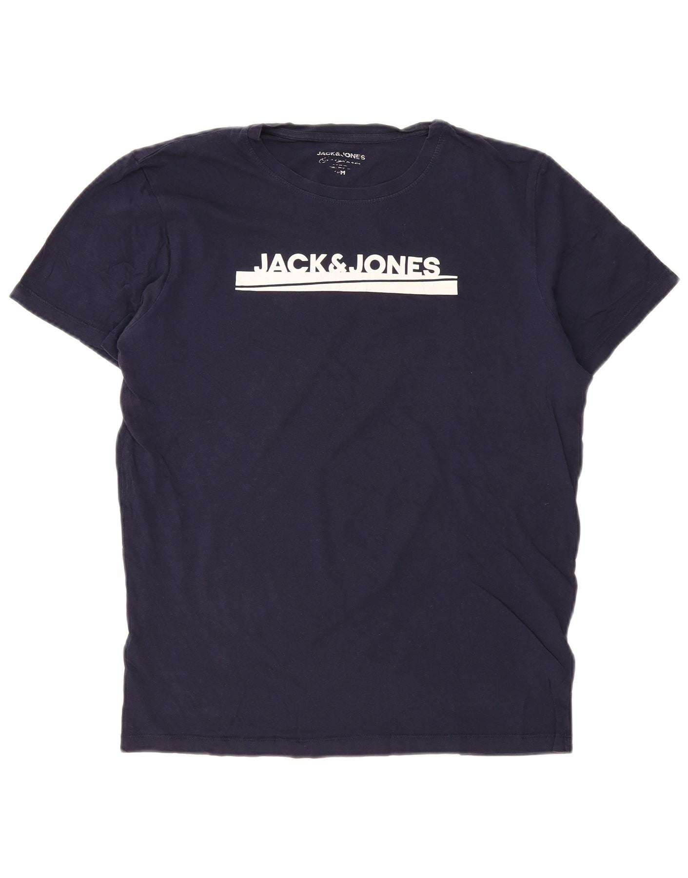 JACK & JONES Mens Graphic T-Shirt Top Medium Navy Blue Cotton