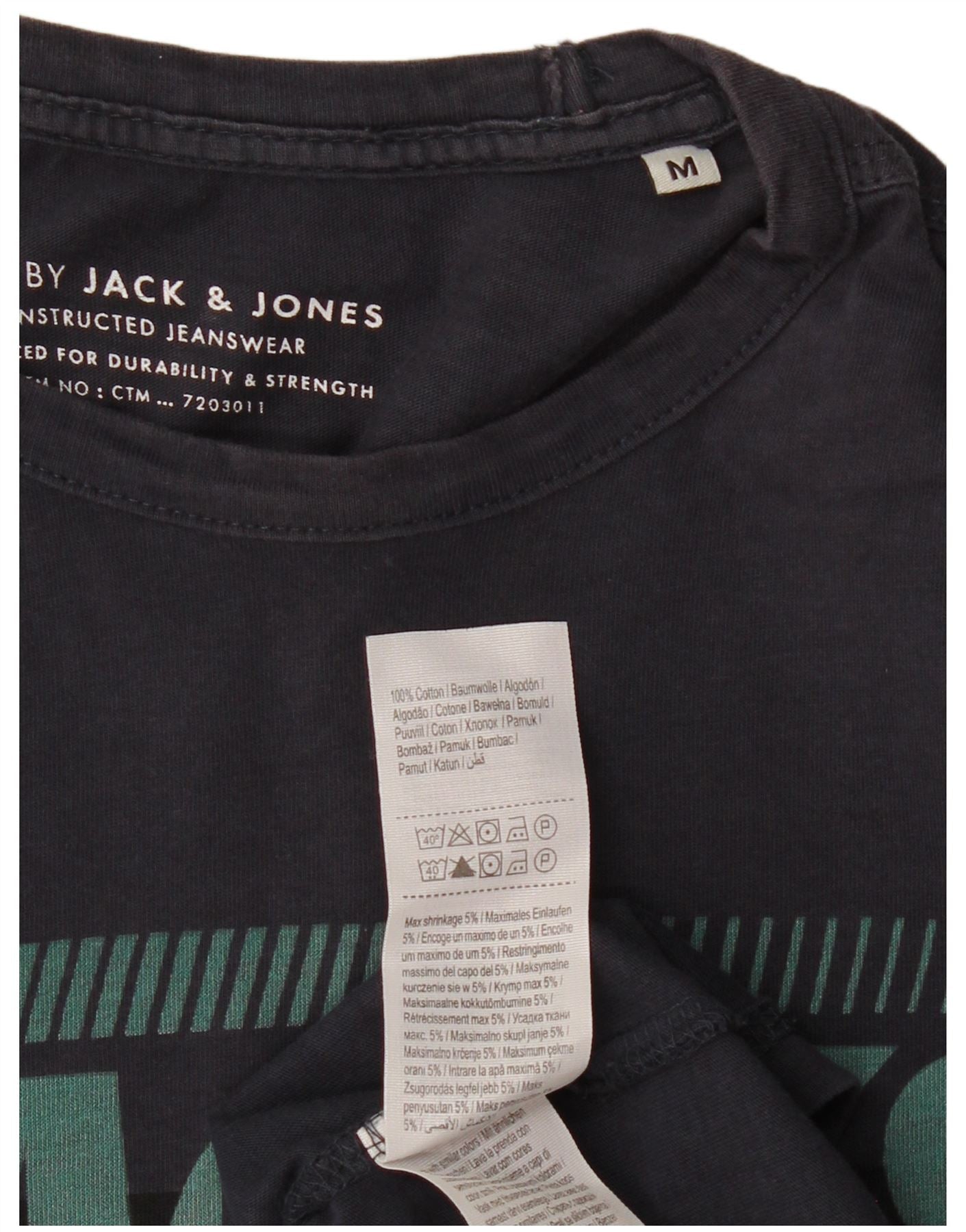 JACK & JONES Mens Graphic T-Shirt Top Medium Navy Blue Cotton