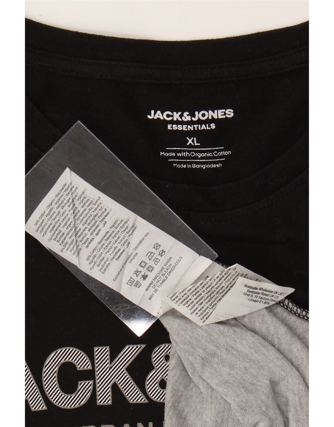 JACK & JONES Mens Graphic T-Shirt Top XL Black Colourblock Cotton