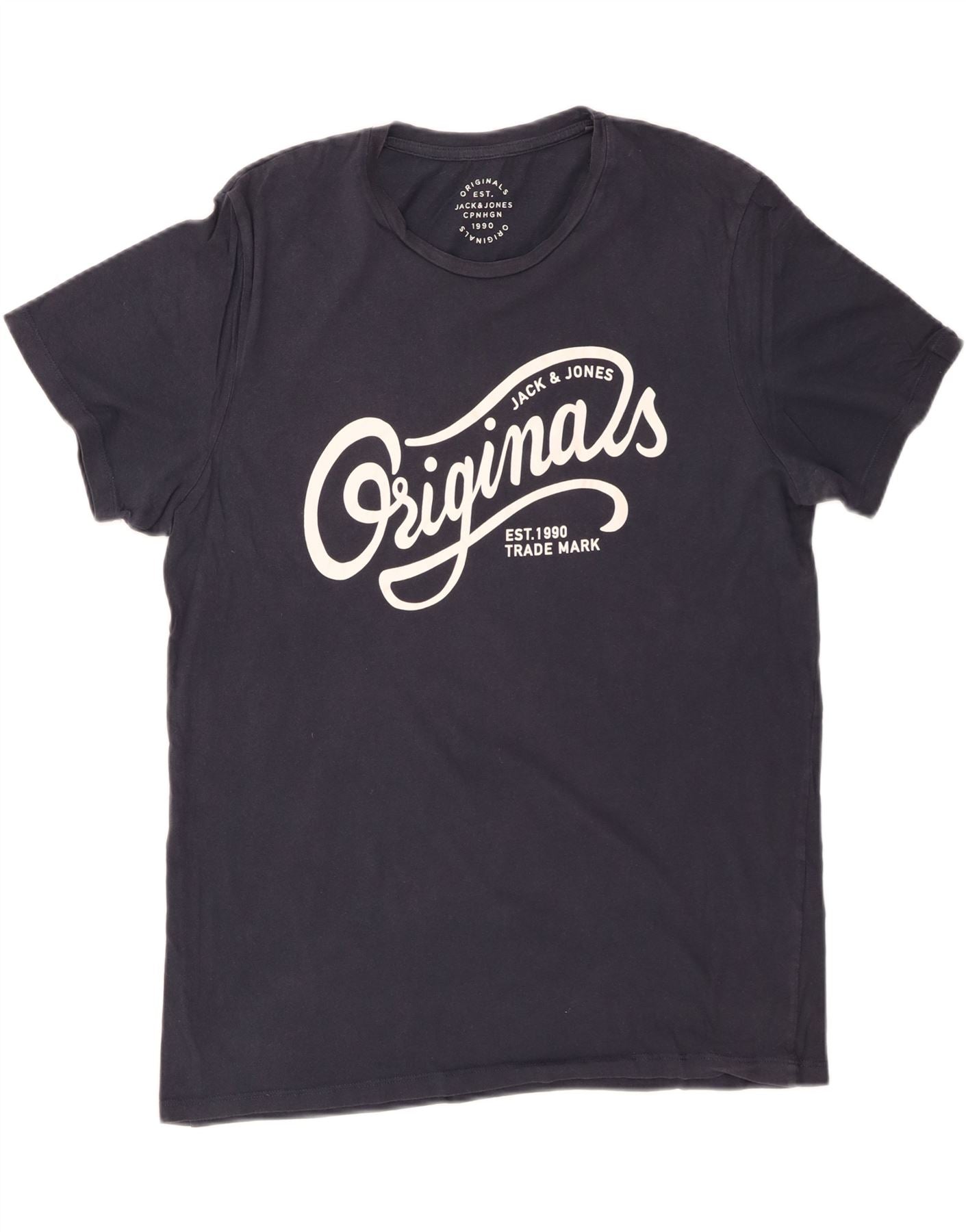 JACK & JONES Mens Graphic T-Shirt Top XL Navy Blue Cotton