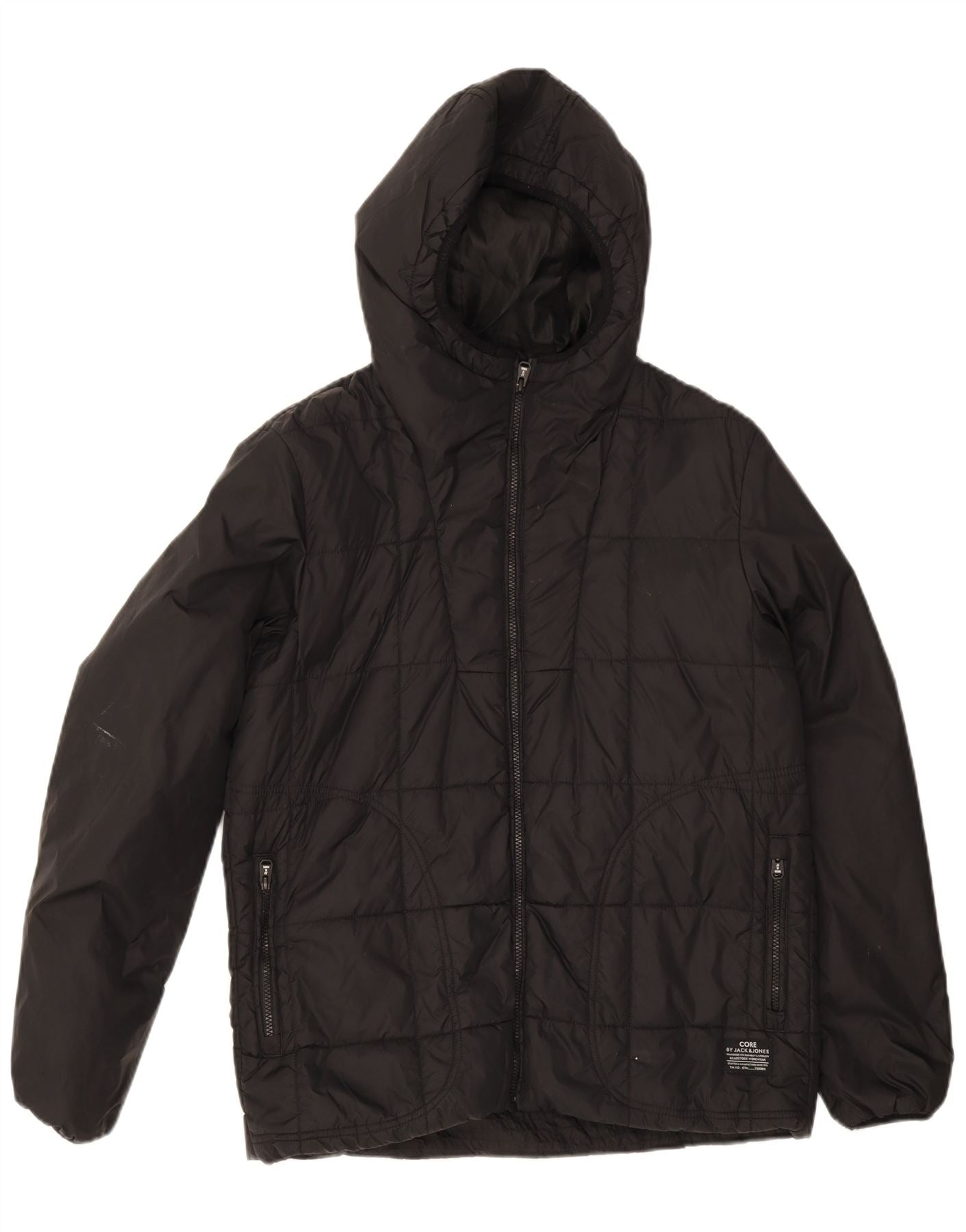 JACK & JONES Mens Hooded Padded Jacket UK 38 Medium Black Nylon