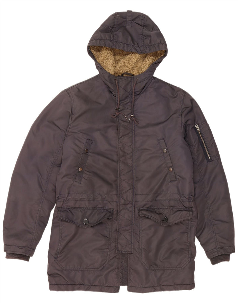 JACK & JONES Mens Hooded Parka Jacket UK 38 Medium Black Cotton