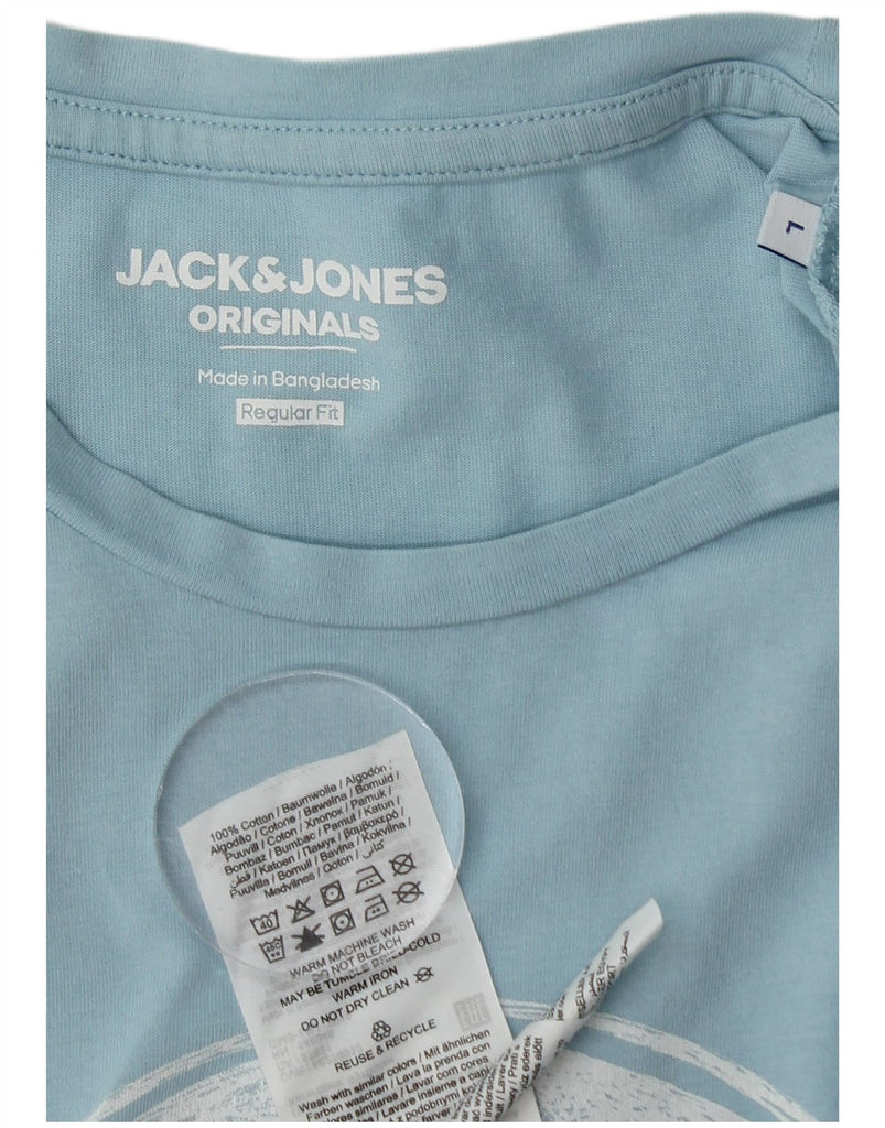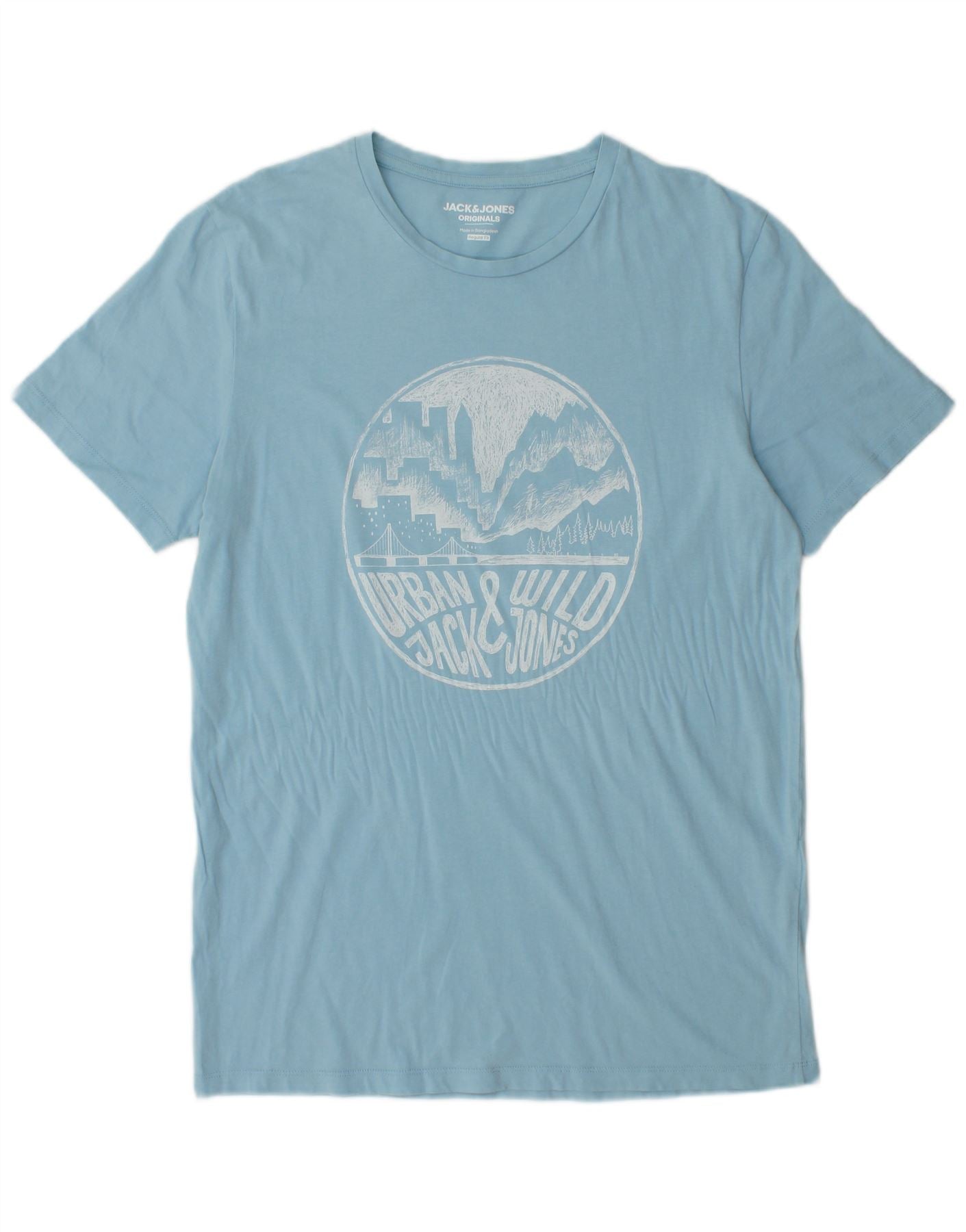 JACK & JONES Mens Regular Fit Graphic T-Shirt Top Large Blue Cotton