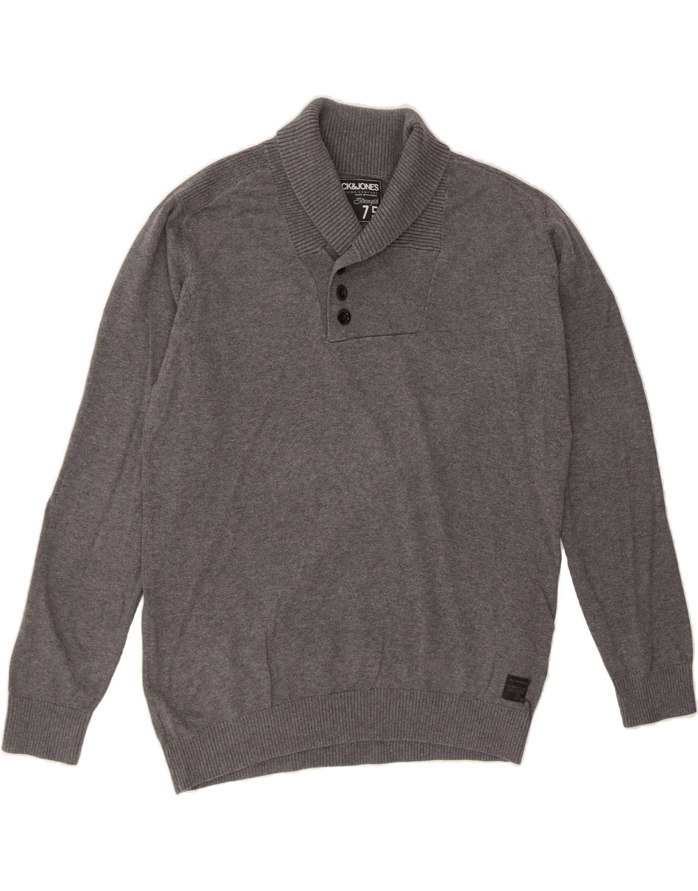 JACK & JONES Mens Shawl Neck Jumper Sweater Large Grey Cotton