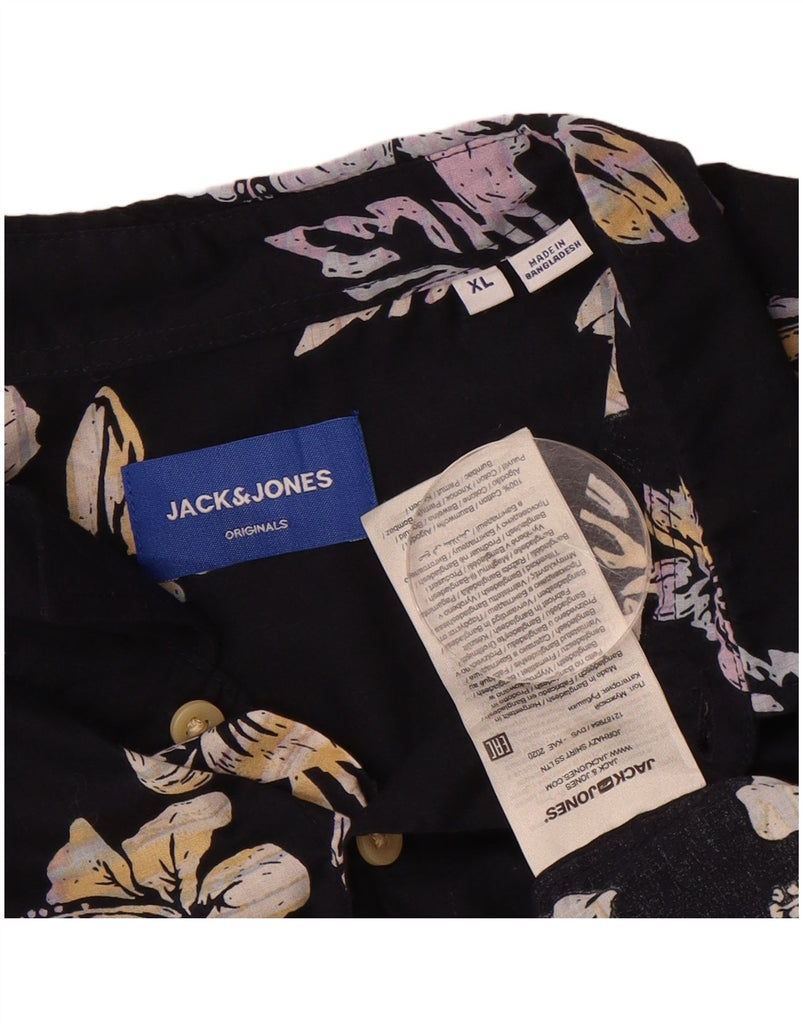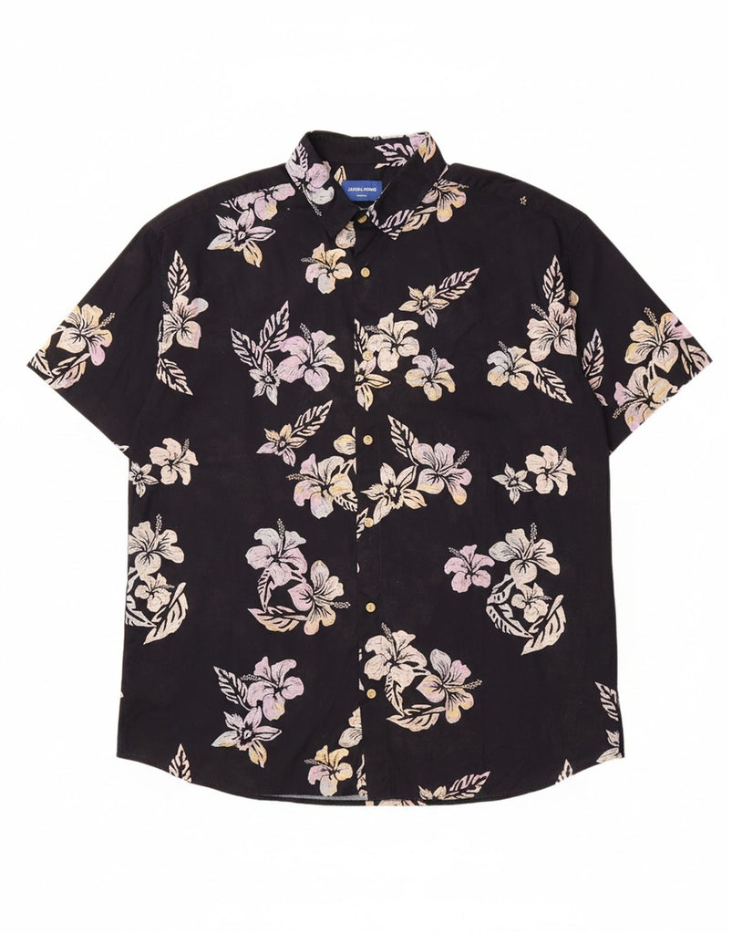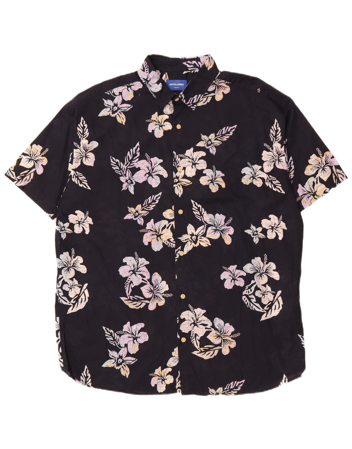 JACK & JONES Mens Short Sleeve Shirt XL Navy Blue Floral Cotton