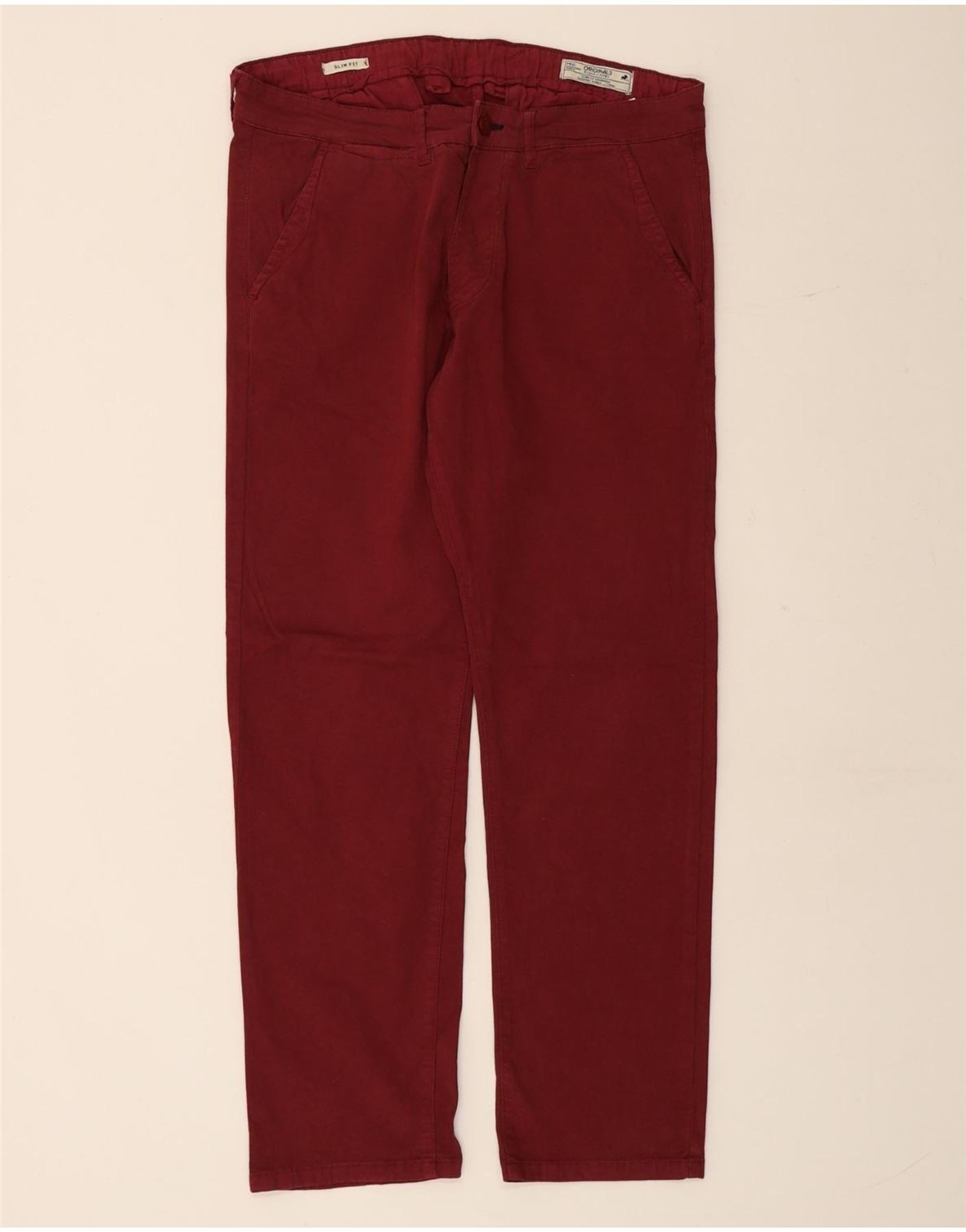 JACK & JONES Mens Slim Fit Chino Trousers W34 L30 Maroon Cotton