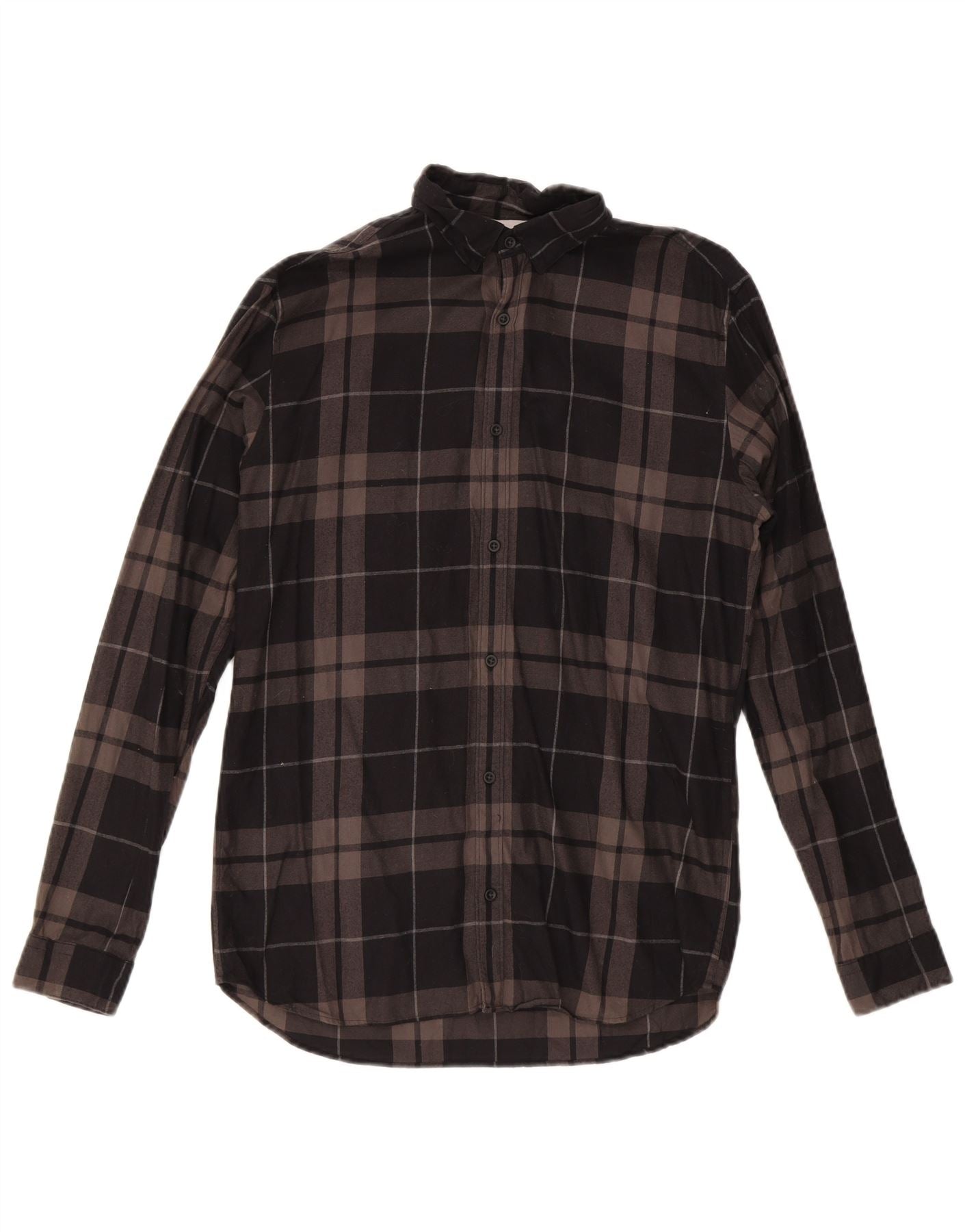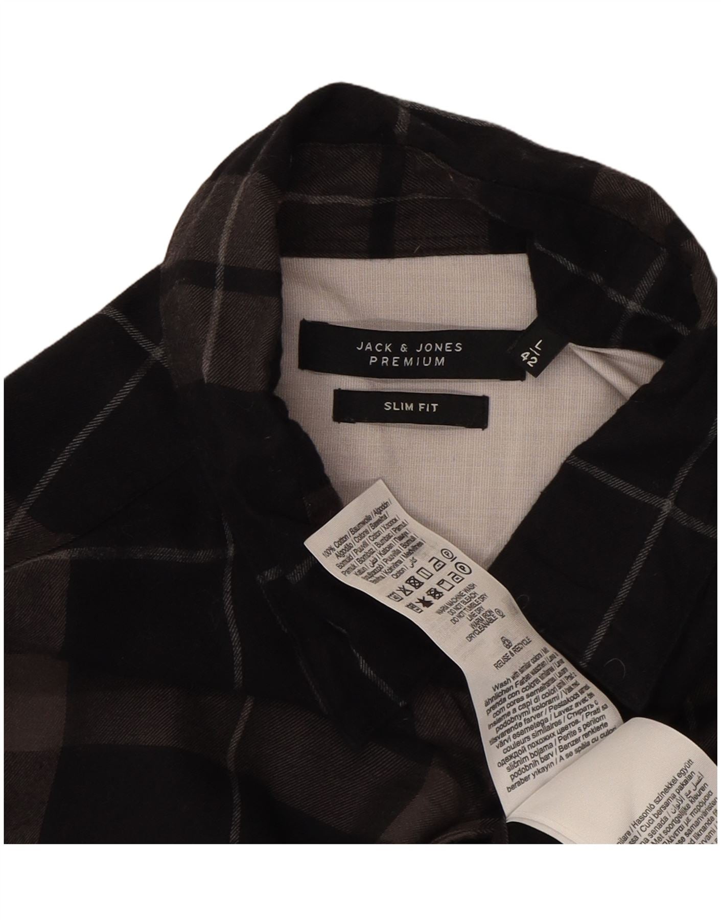 JACK & JONES Mens Slim Fit Flannel Shirt Size 42 Large Black Check Cotton