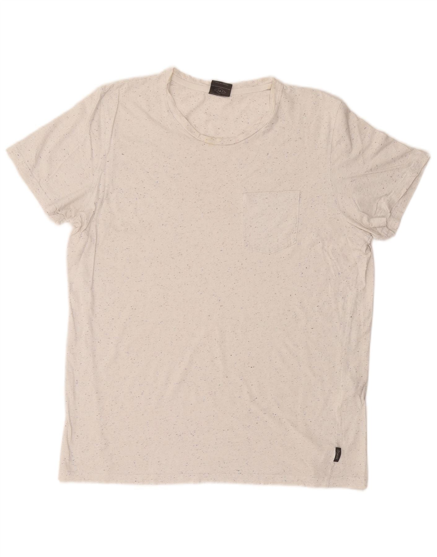 Jack & Jones Mens T-Shirt Top Large White Flecked Cotton