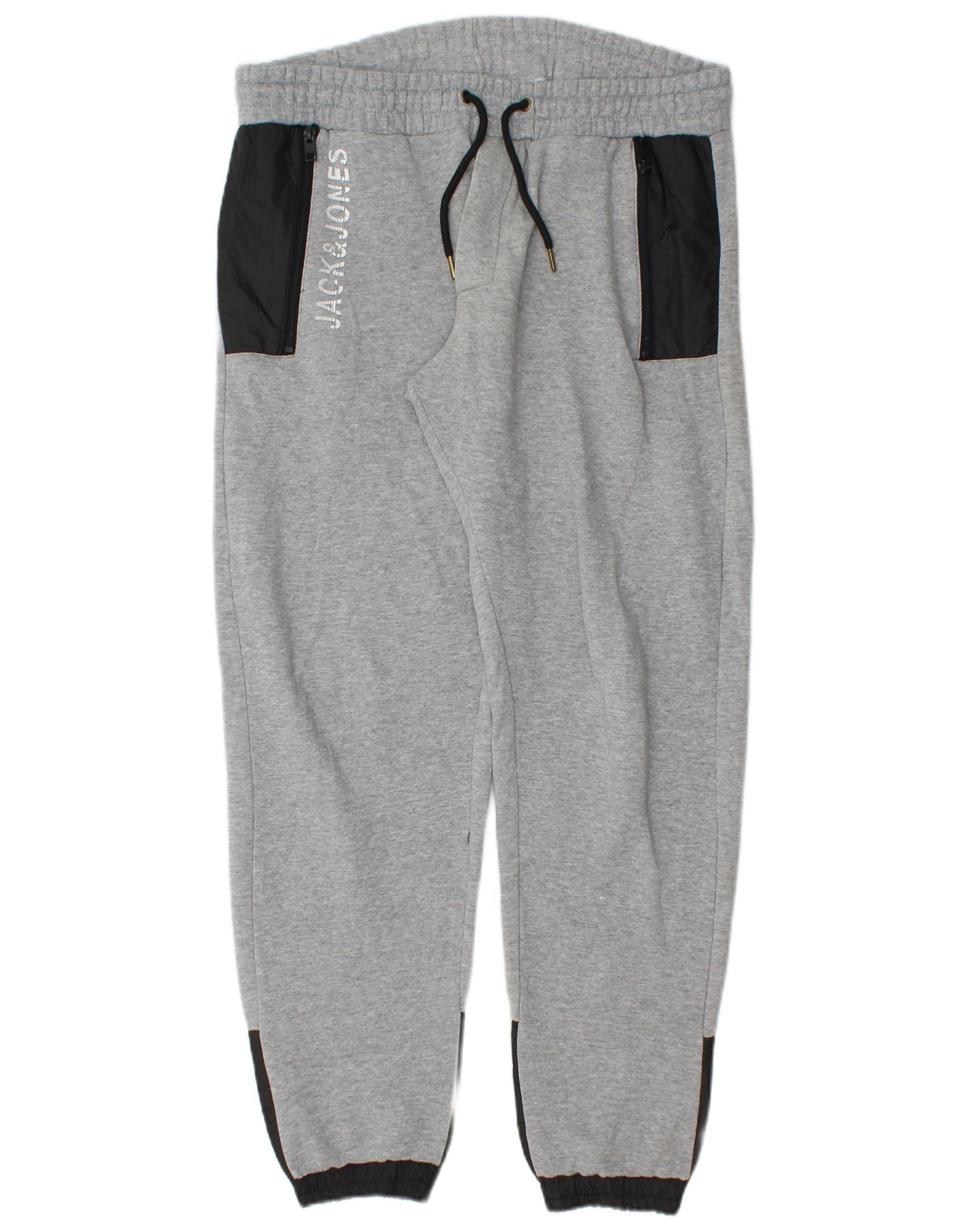 JACK & JONES Mens Tracksuit Trousers Joggers Large Grey Colourblock
