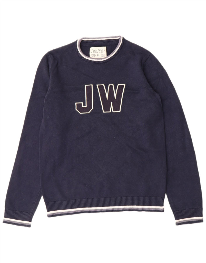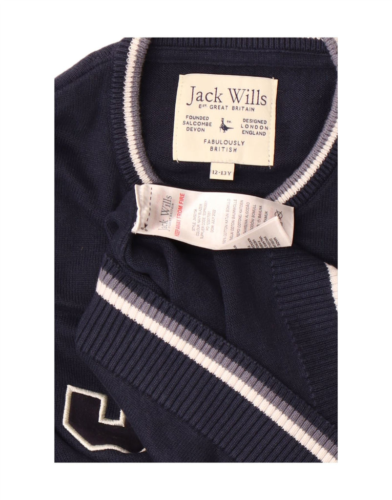 JACK WILLS Boys Graphic Crew Neck Jumper Sweater 12-13 Years Navy Blue