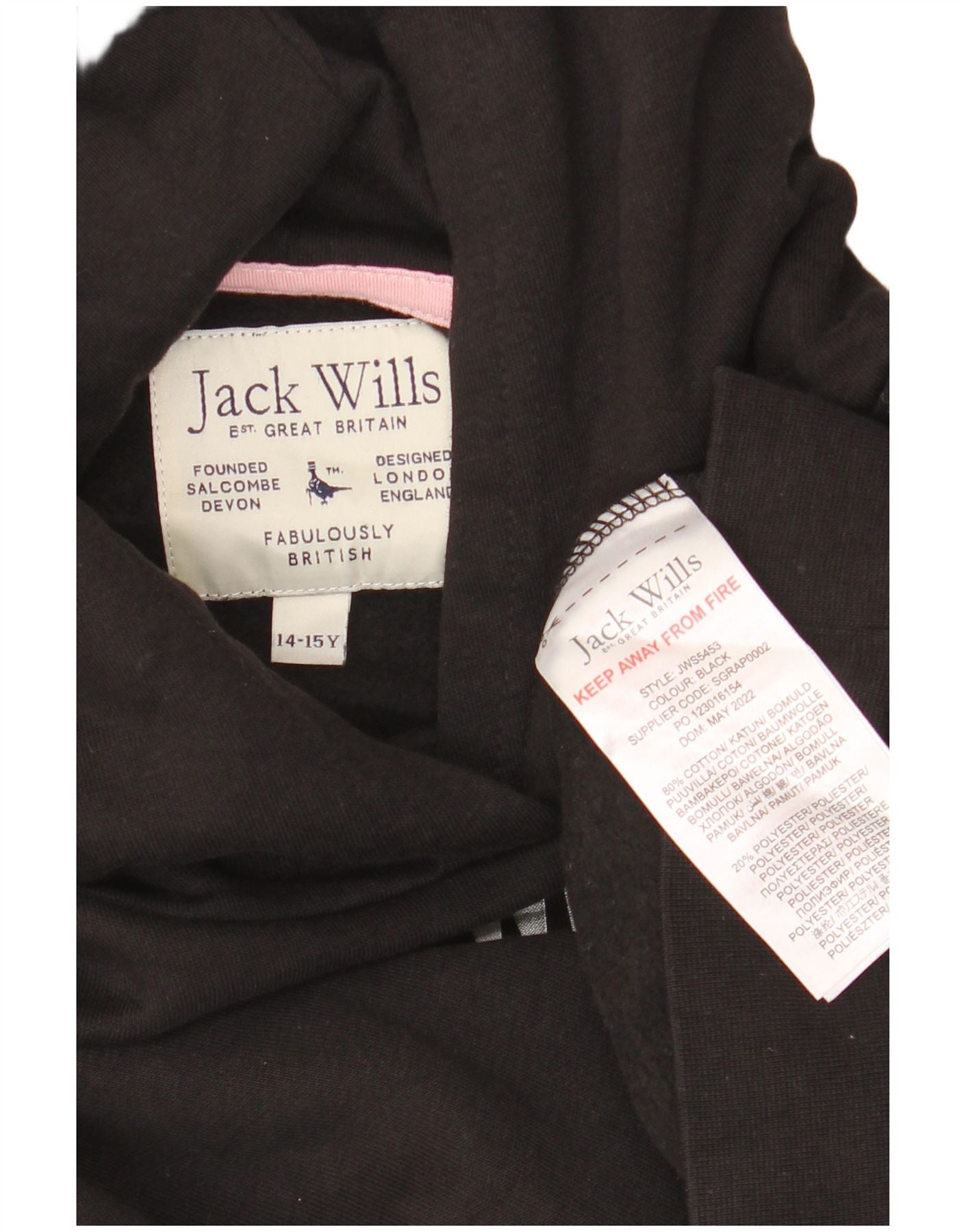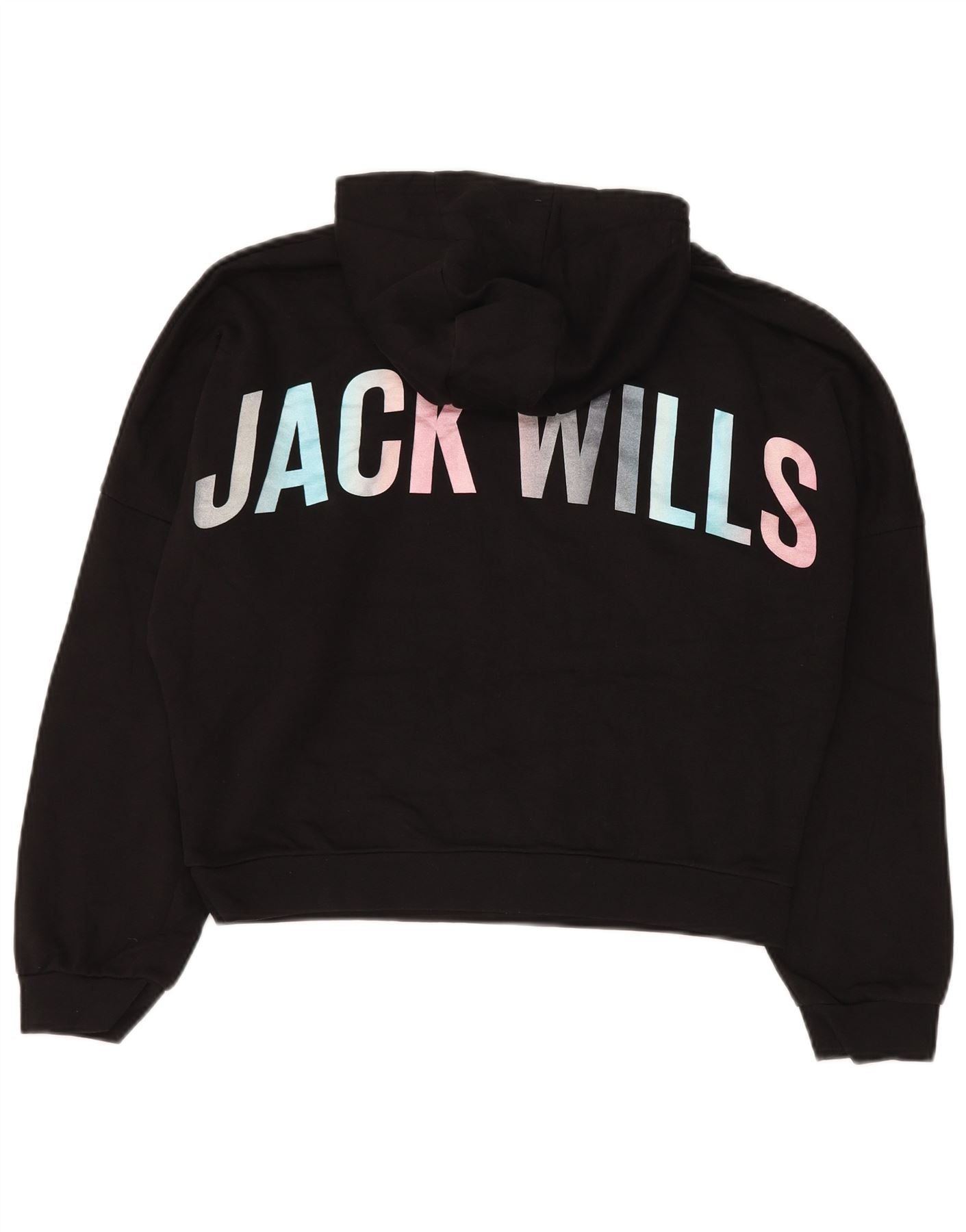 JACK WILLS Girls Oversized Crop Graphic Hoodie Jumper 14-15 Years Black