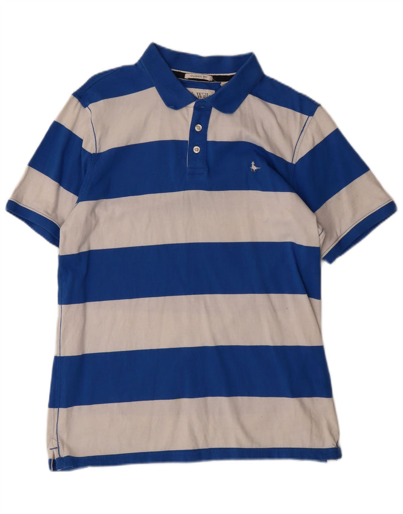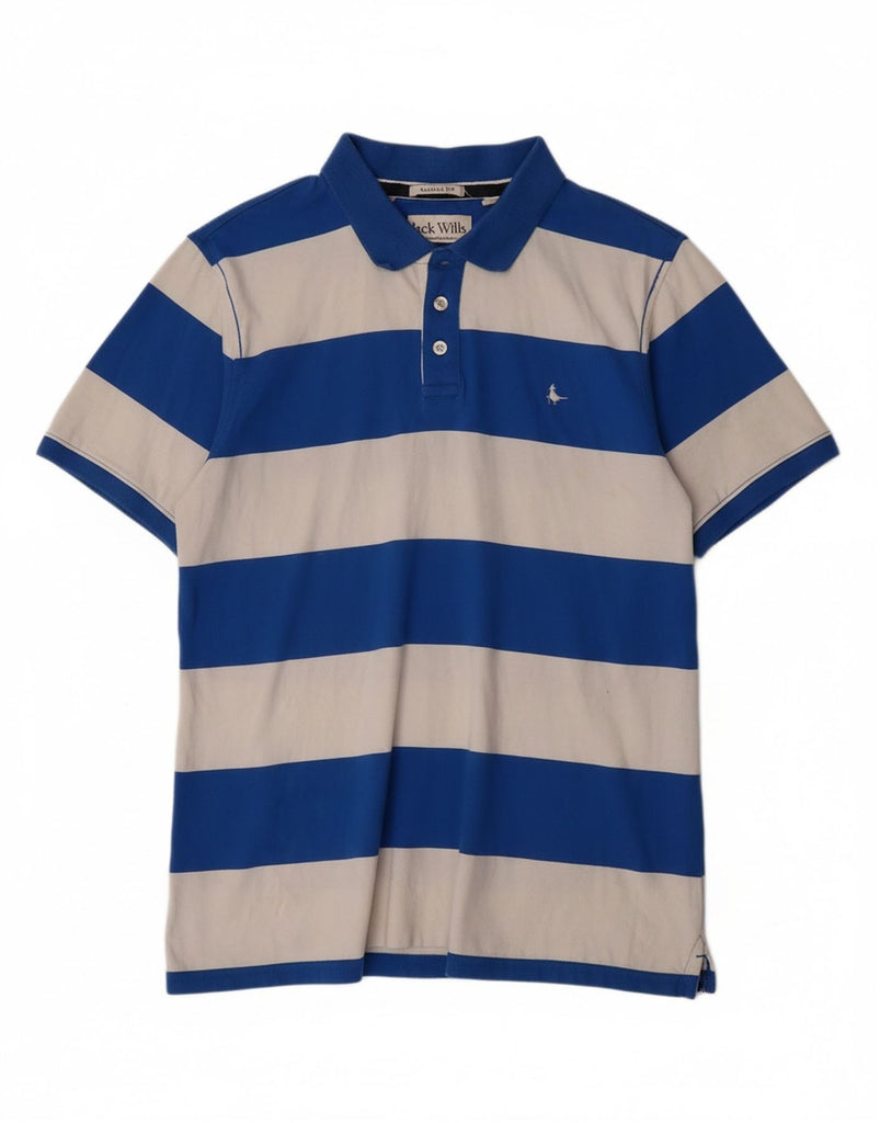 JACK WILLS Mens Classic Fit Polo Shirt Medium Blue Striped Cotton