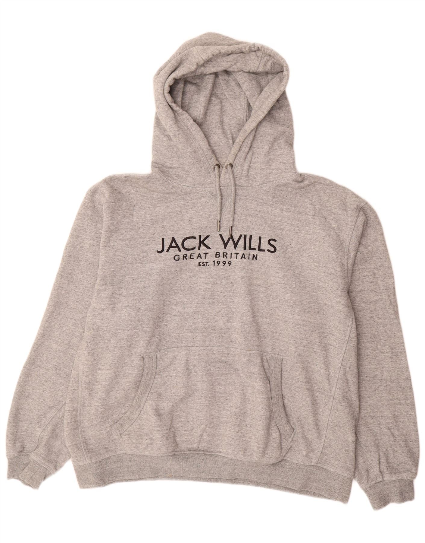 JACK WILLS Mens Graphic Hoodie Jumper 3XL Grey Flecked Cotton