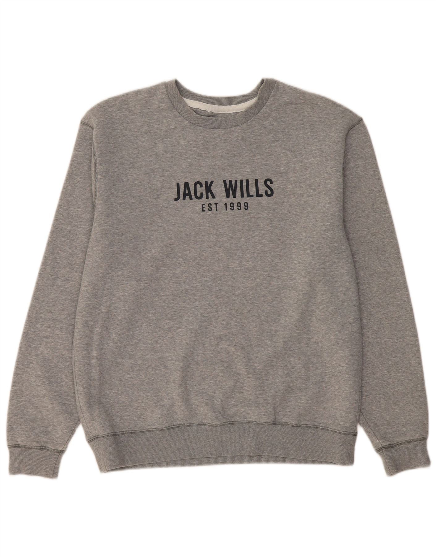 JACK WILLS Mens Graphic Sweatshirt Jumper Large Grey Cotton