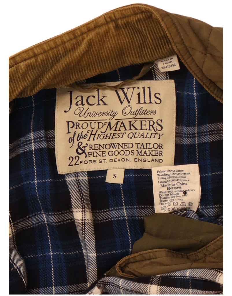 JACK WILLS Mens Military Quilted Jacket UK 36 Small Khaki Cotton