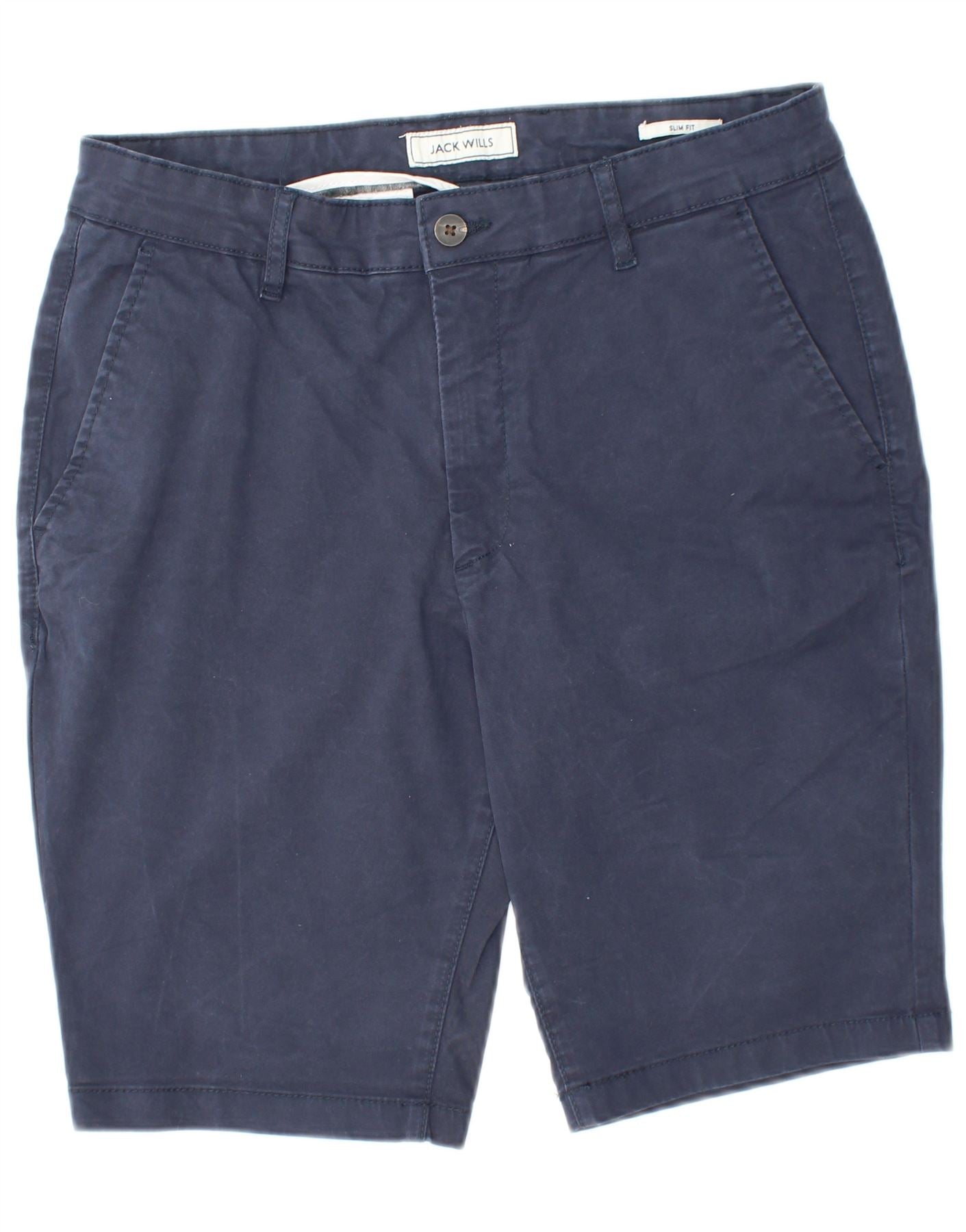 JACK WILLS Mens Slim Fit Chino Shorts W32 Medium Navy Blue Cotton