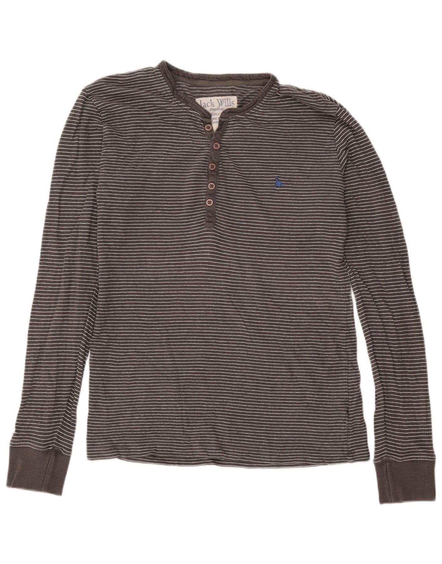 JACK WILLS Mens Top Long Sleeve Small Grey Pinstripe Cotton