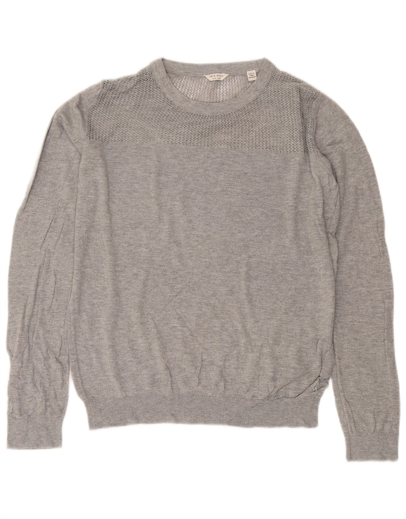 Jack Wills Womens Crew Neck Jumper Sweater UK 12 Medium Grey Cotton