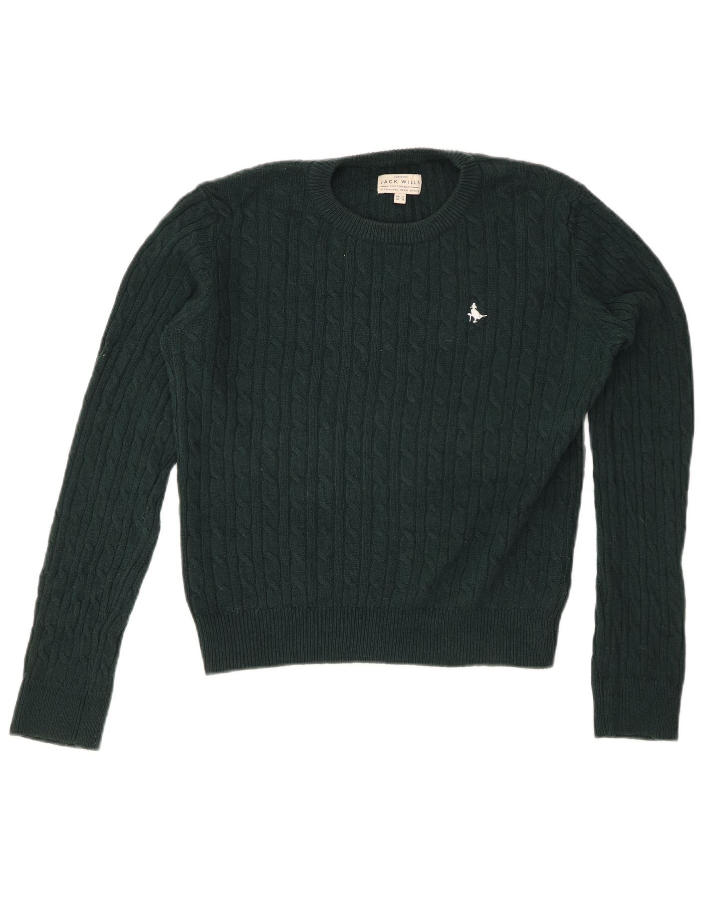 JACK WILLS Womens Crop Crew Neck Jumper Sweater UK 12 Medium Green Wool