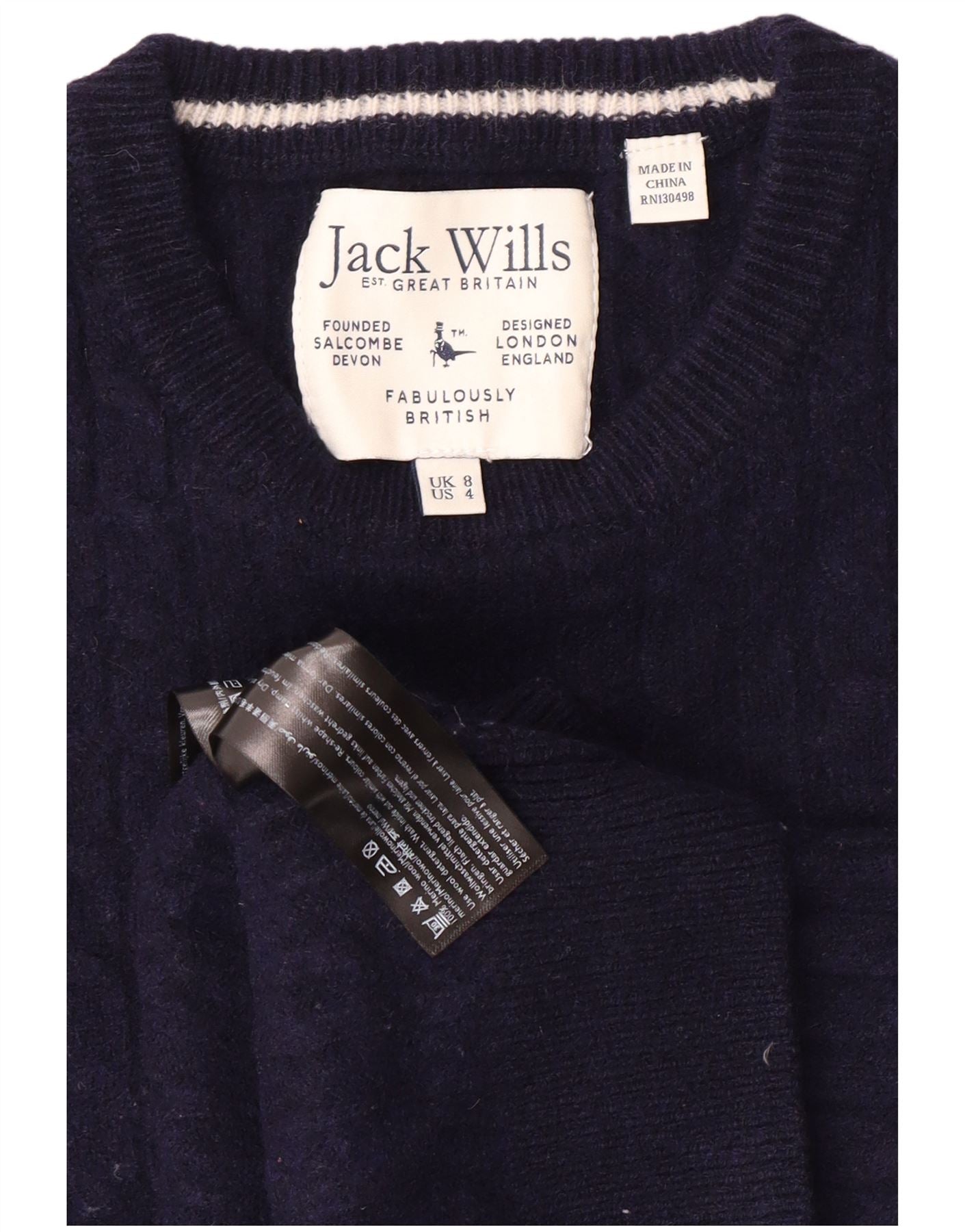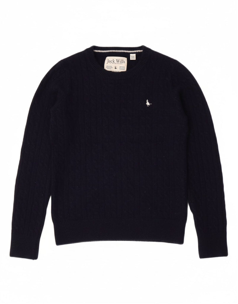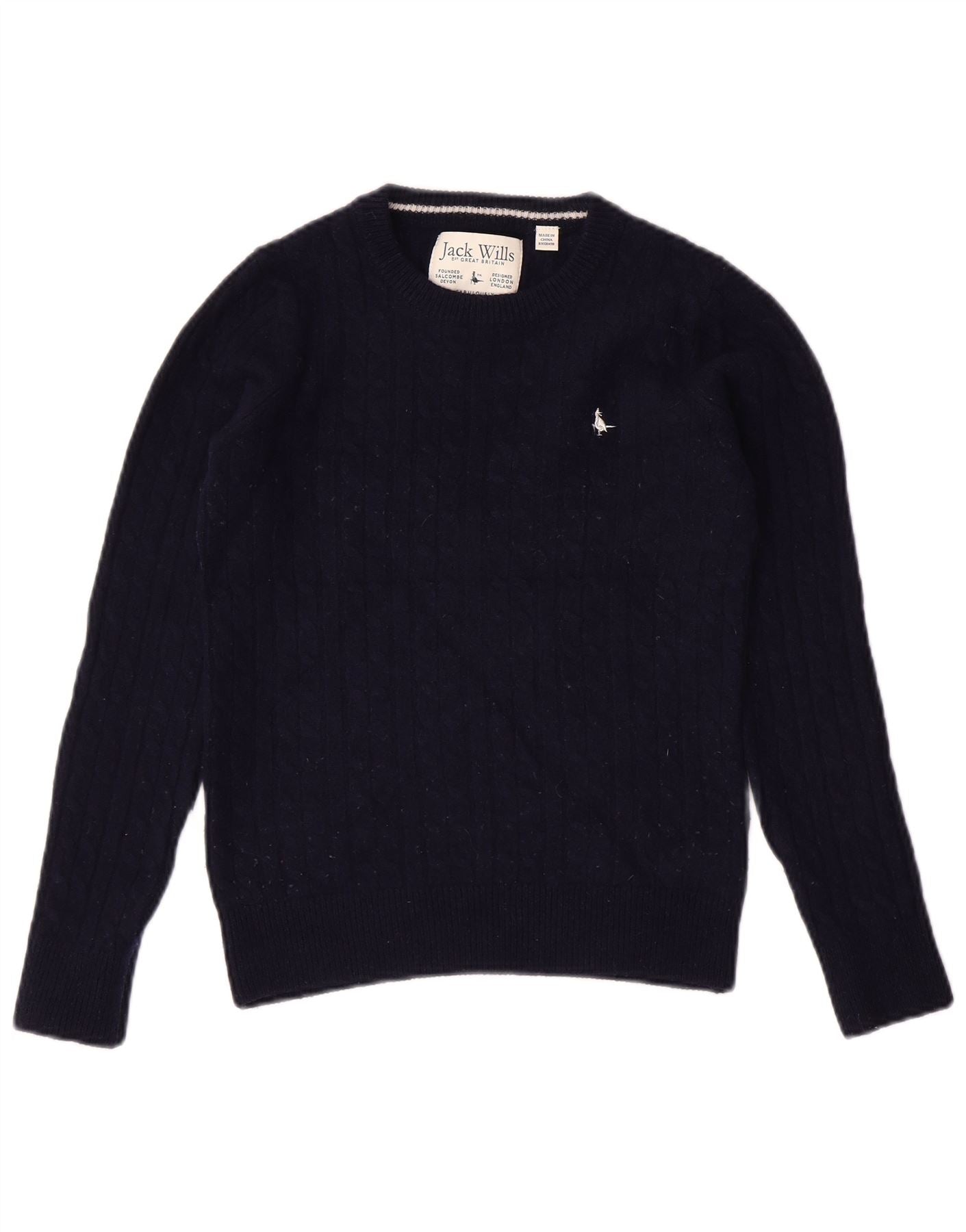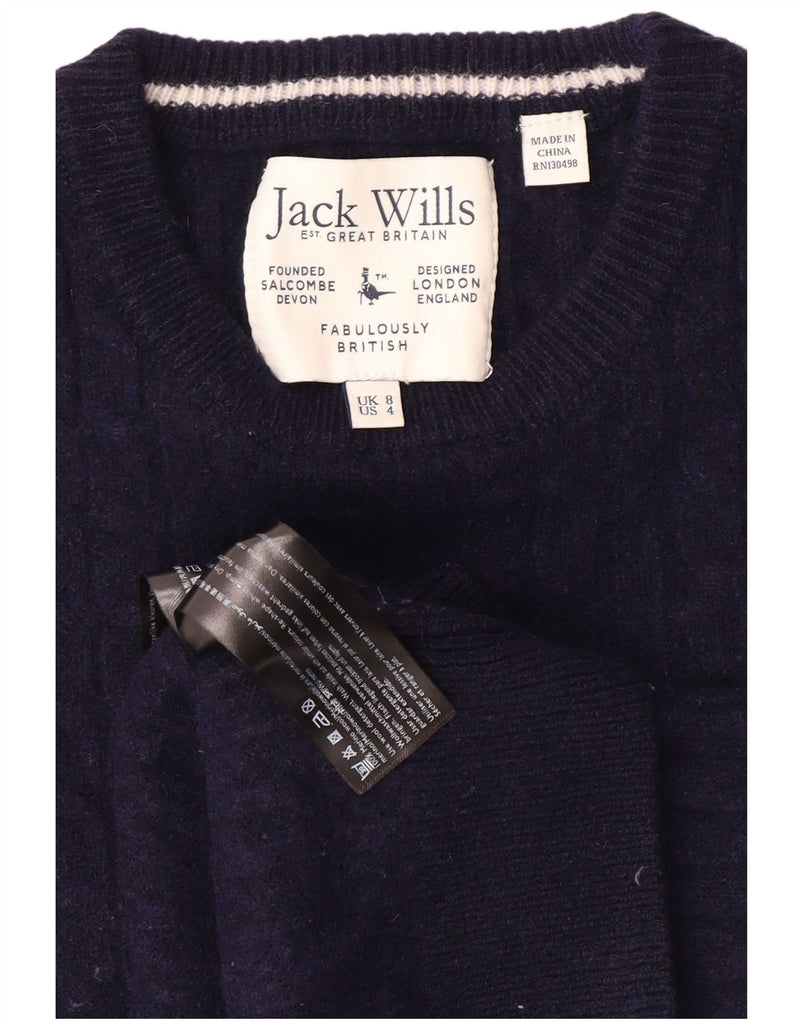 JACK WILLS Womens Crop Crew Neck Jumper Sweater UK 8 Small Navy Blue