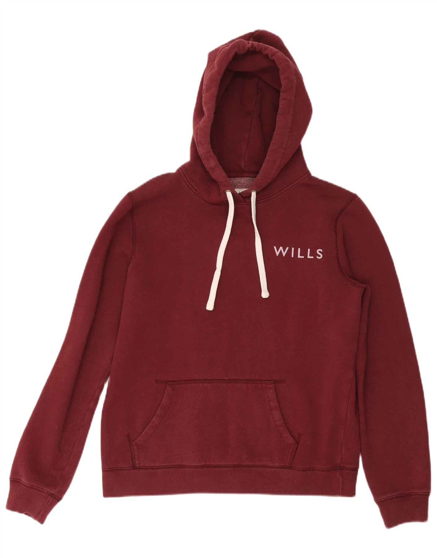 JACK WILLS Womens Graphic Hoodie Jumper UK 12 Medium Burgundy Cotton