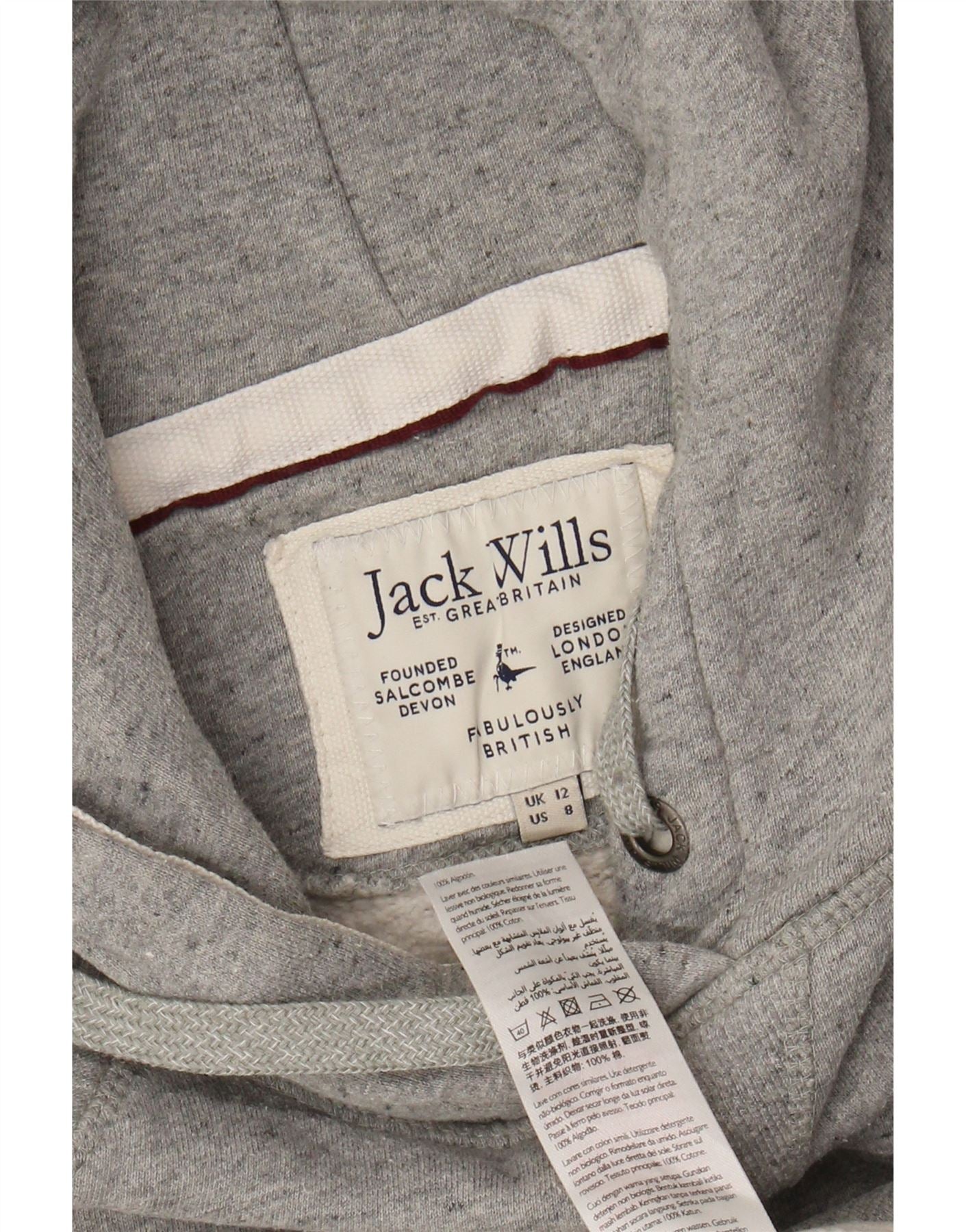 JACK WILLS Womens Graphic Hoodie Jumper UK 12 Medium Grey Colourblock