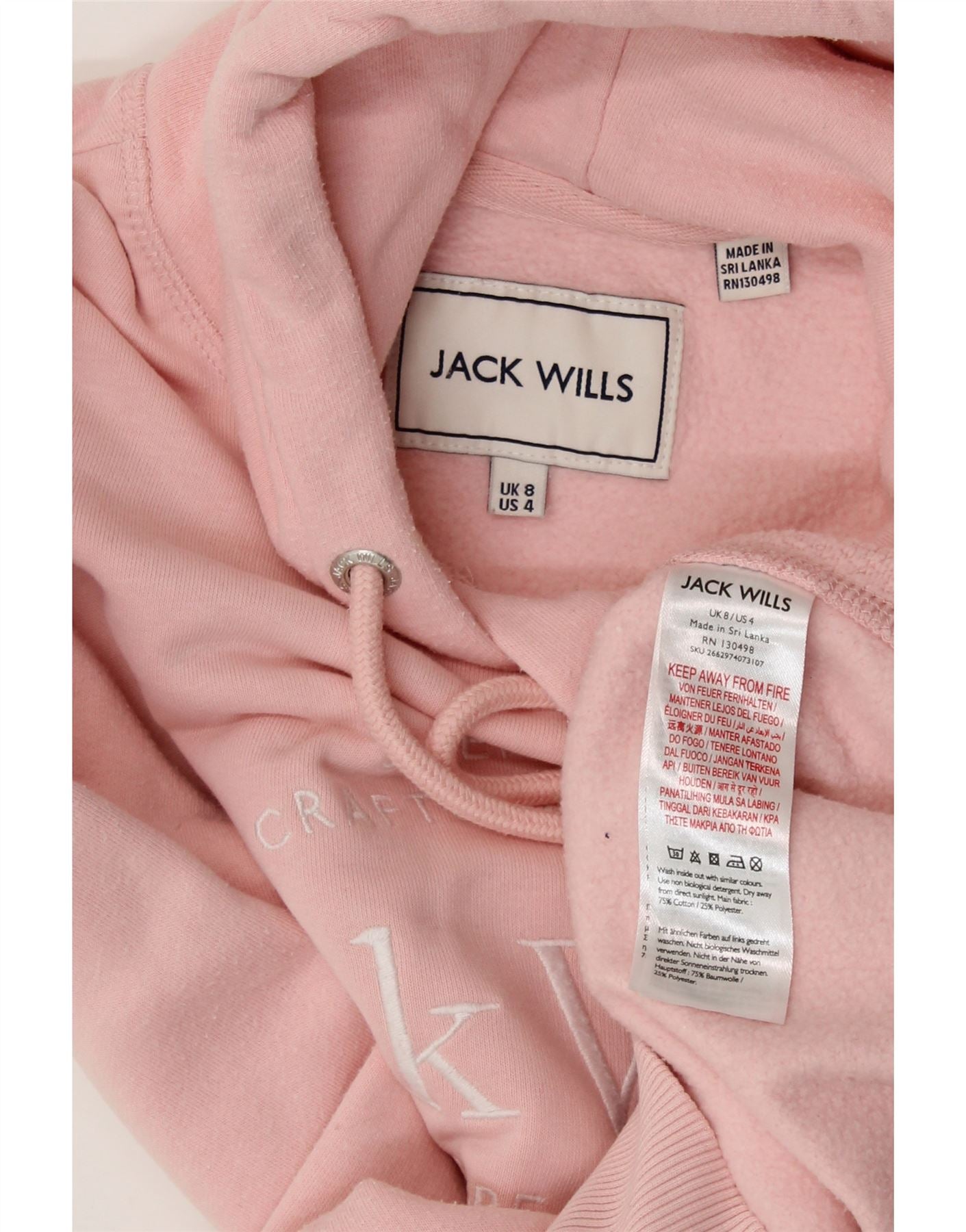 JACK WILLS Womens Graphic Oversized Hoodie Jumper UK 8 Small Pink Cotton
