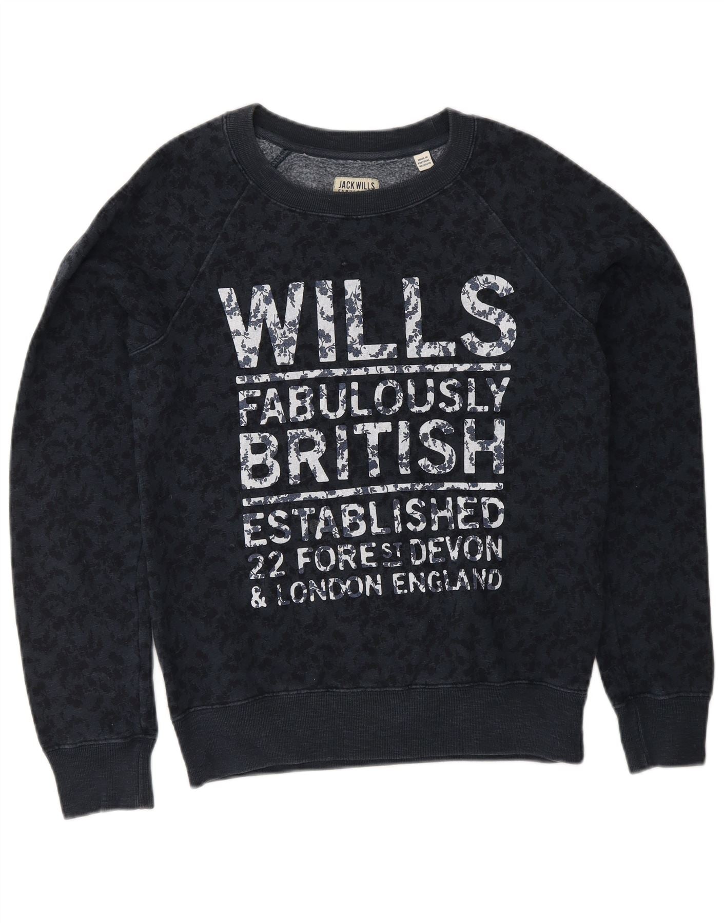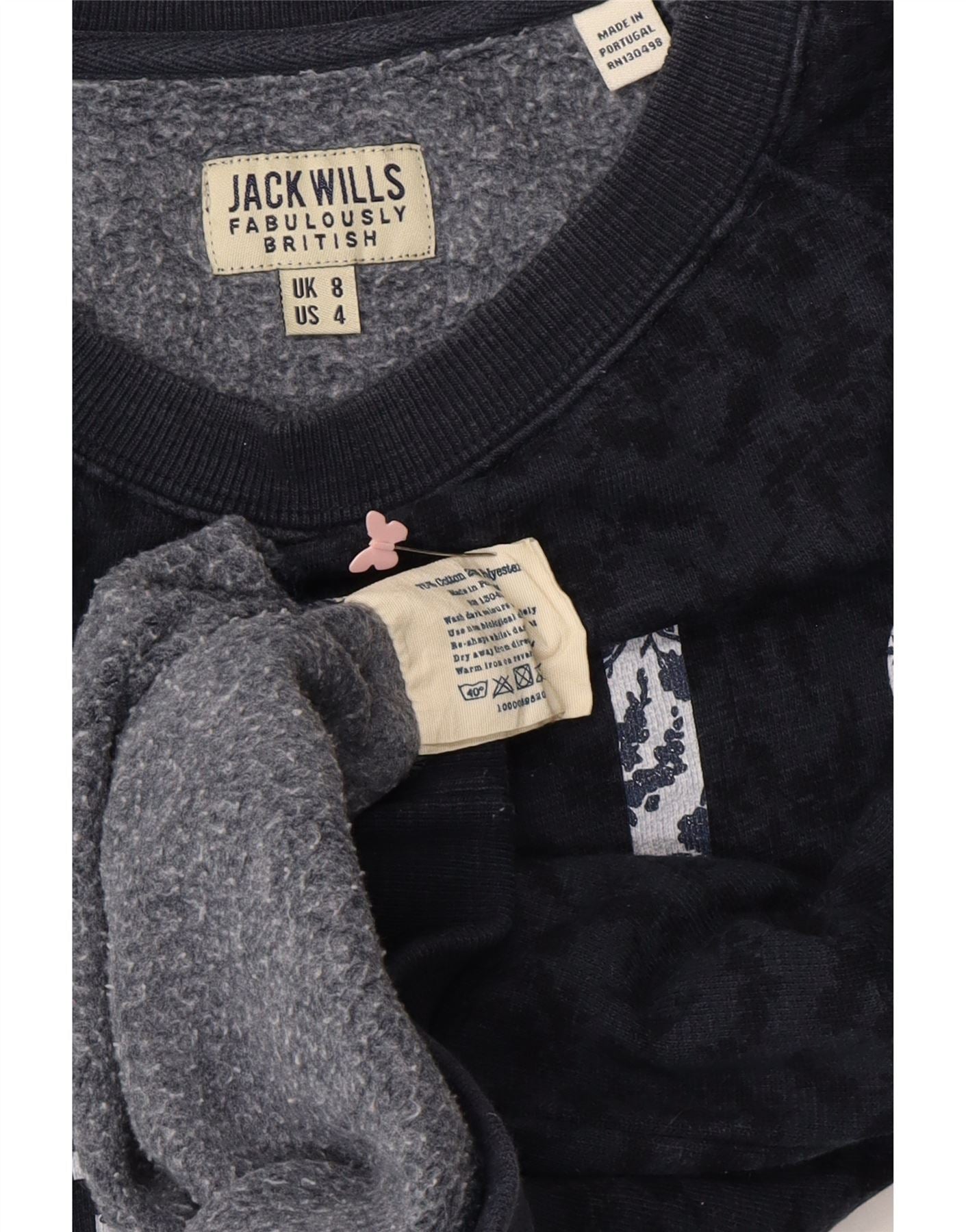 JACK WILLS Womens Graphic Sweatshirt Jumper UK 8 Small Navy Blue Floral