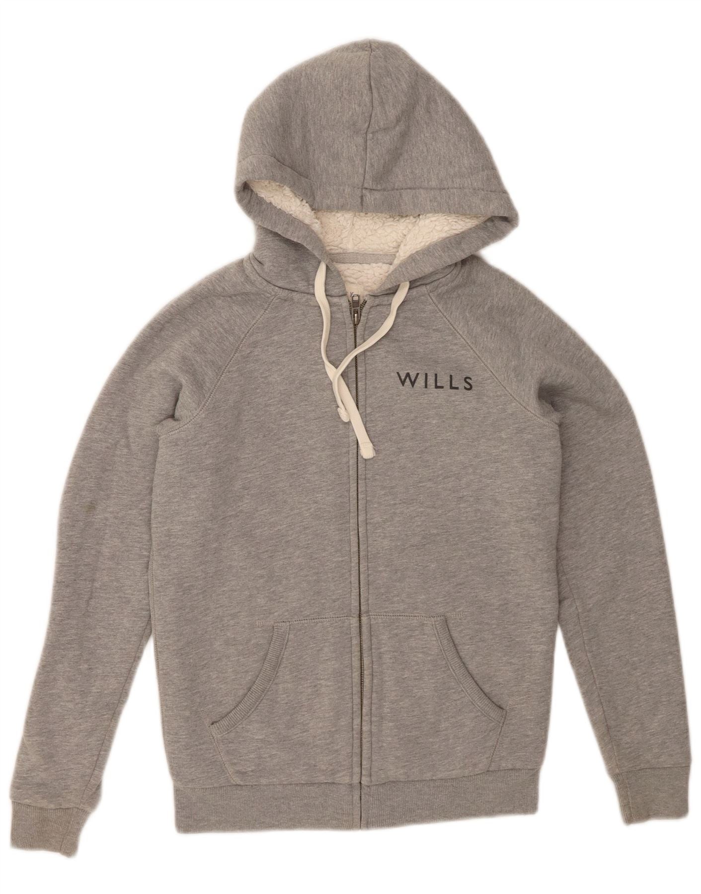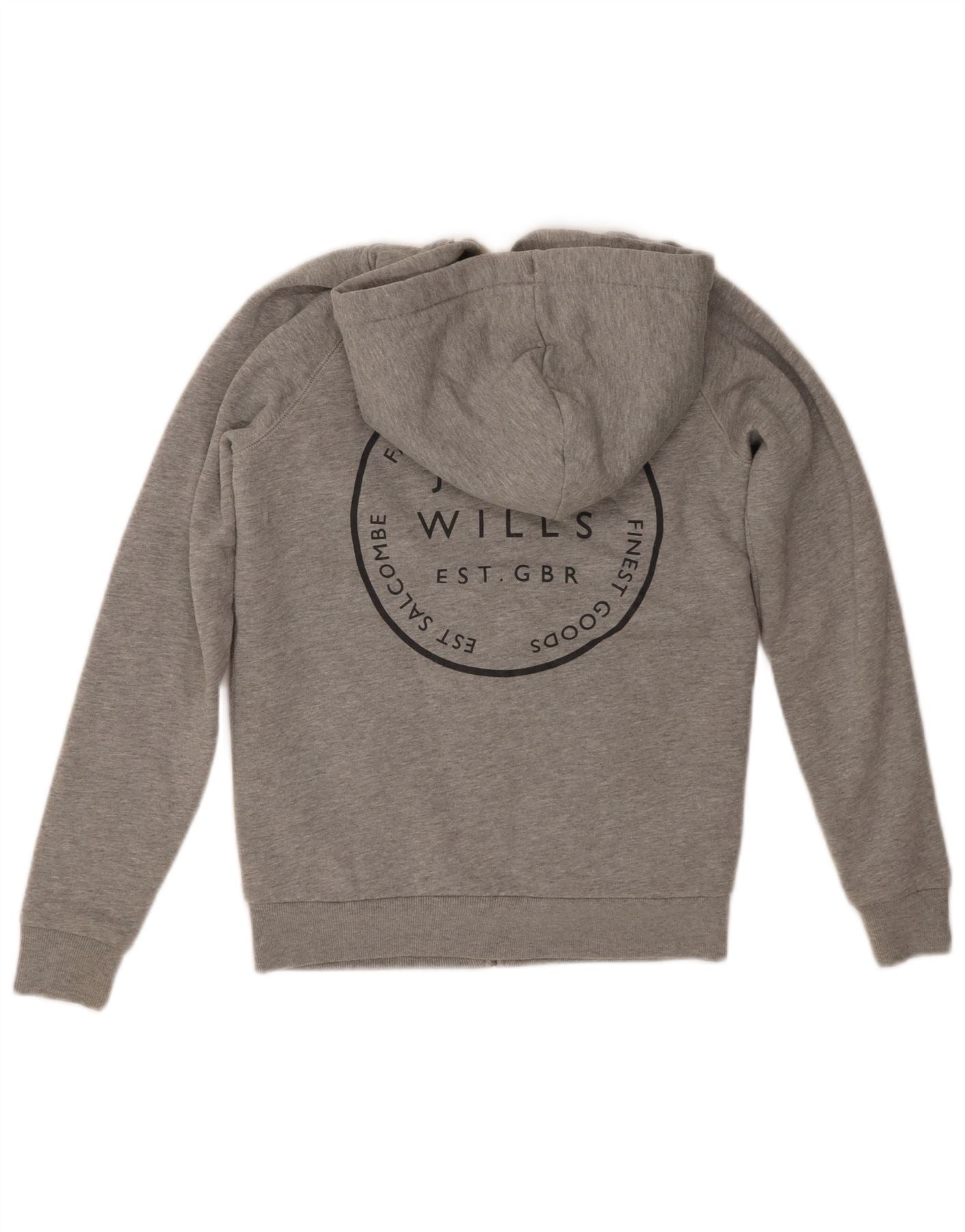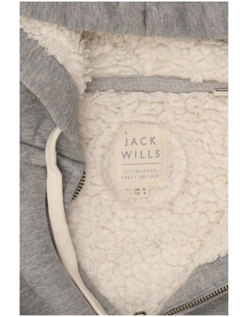 JACK WILLS Womens Graphic Zip Hoodie Sweater UK 8 Small Grey Flecked