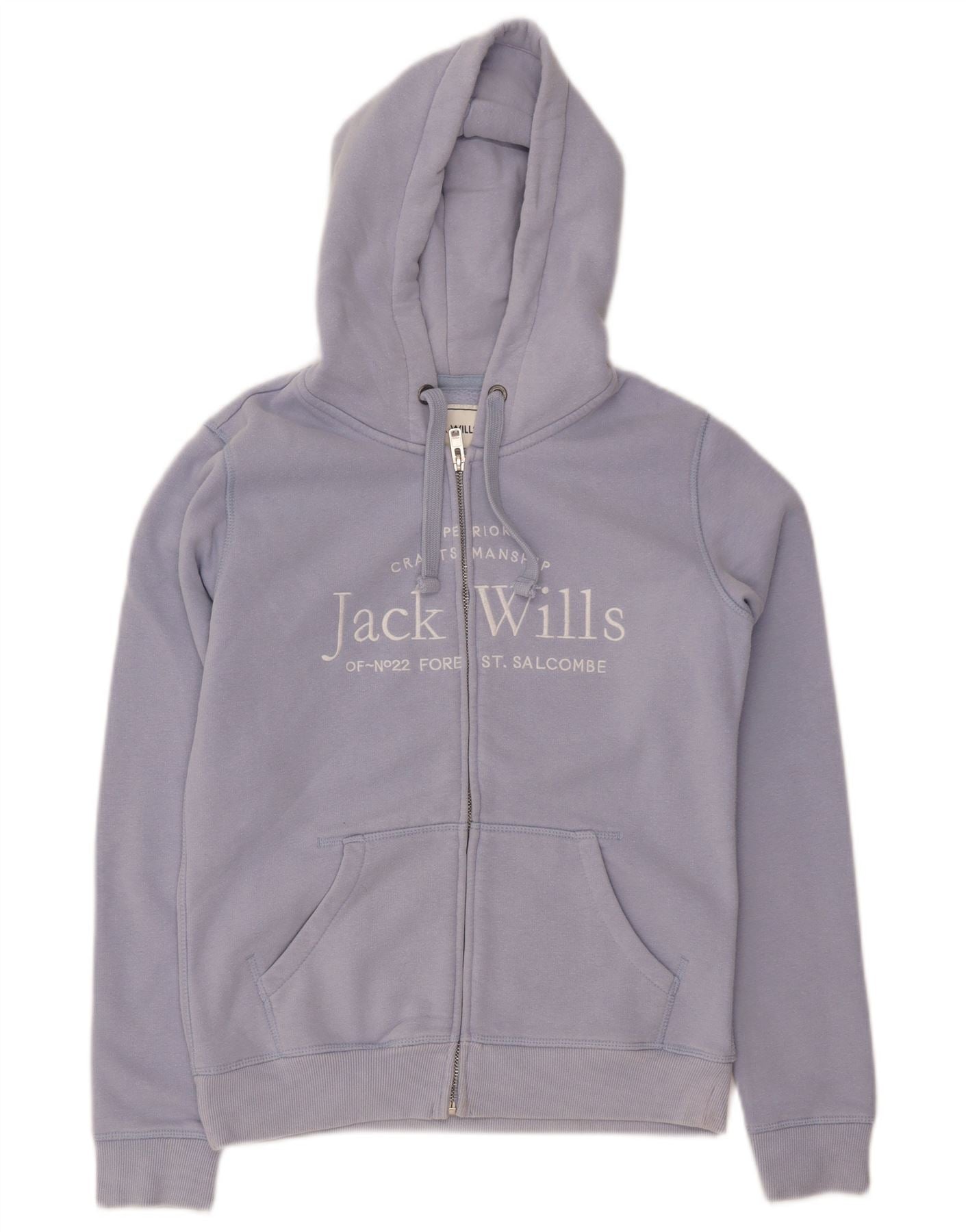JACK WILLS Womens Oversized Graphic Zip Hoodie Sweater UK 6 XS Purple