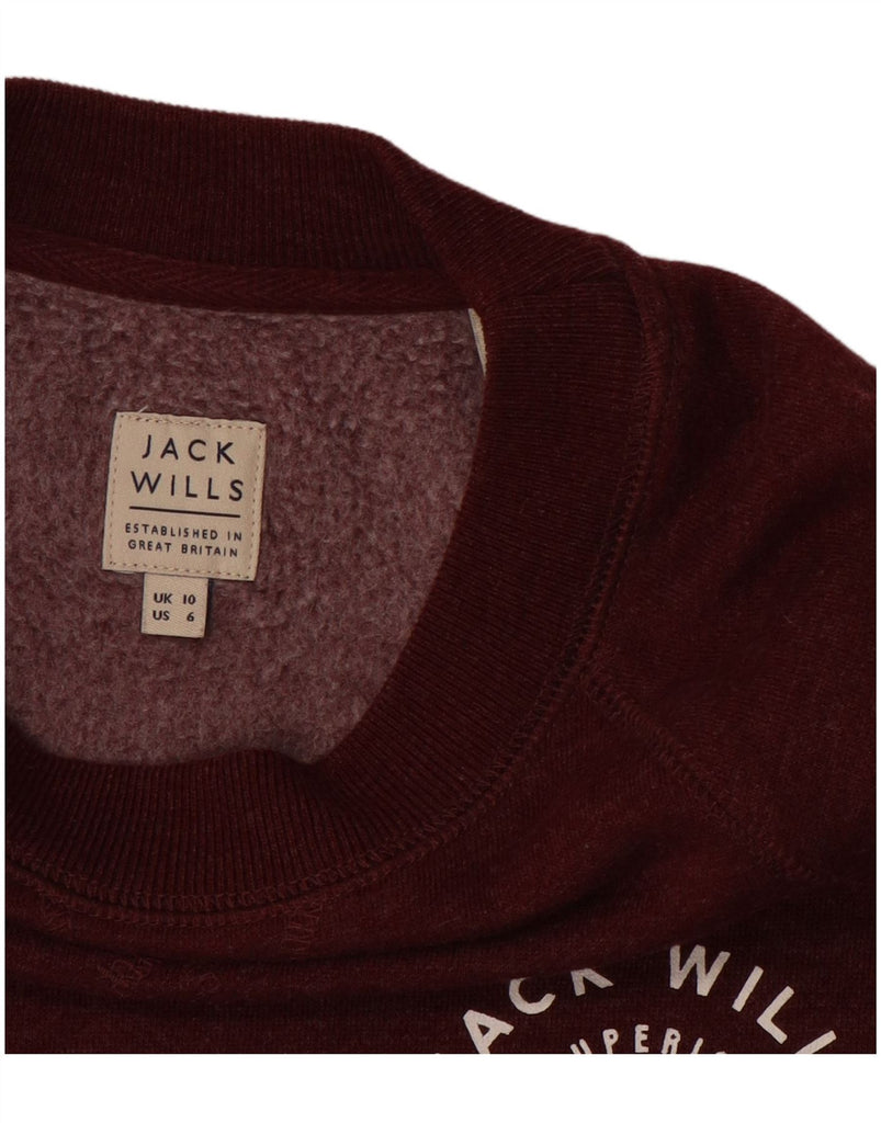 JACK WILLS Womens Sweatshirt Jumper UK 10 Small Burgundy Cotton