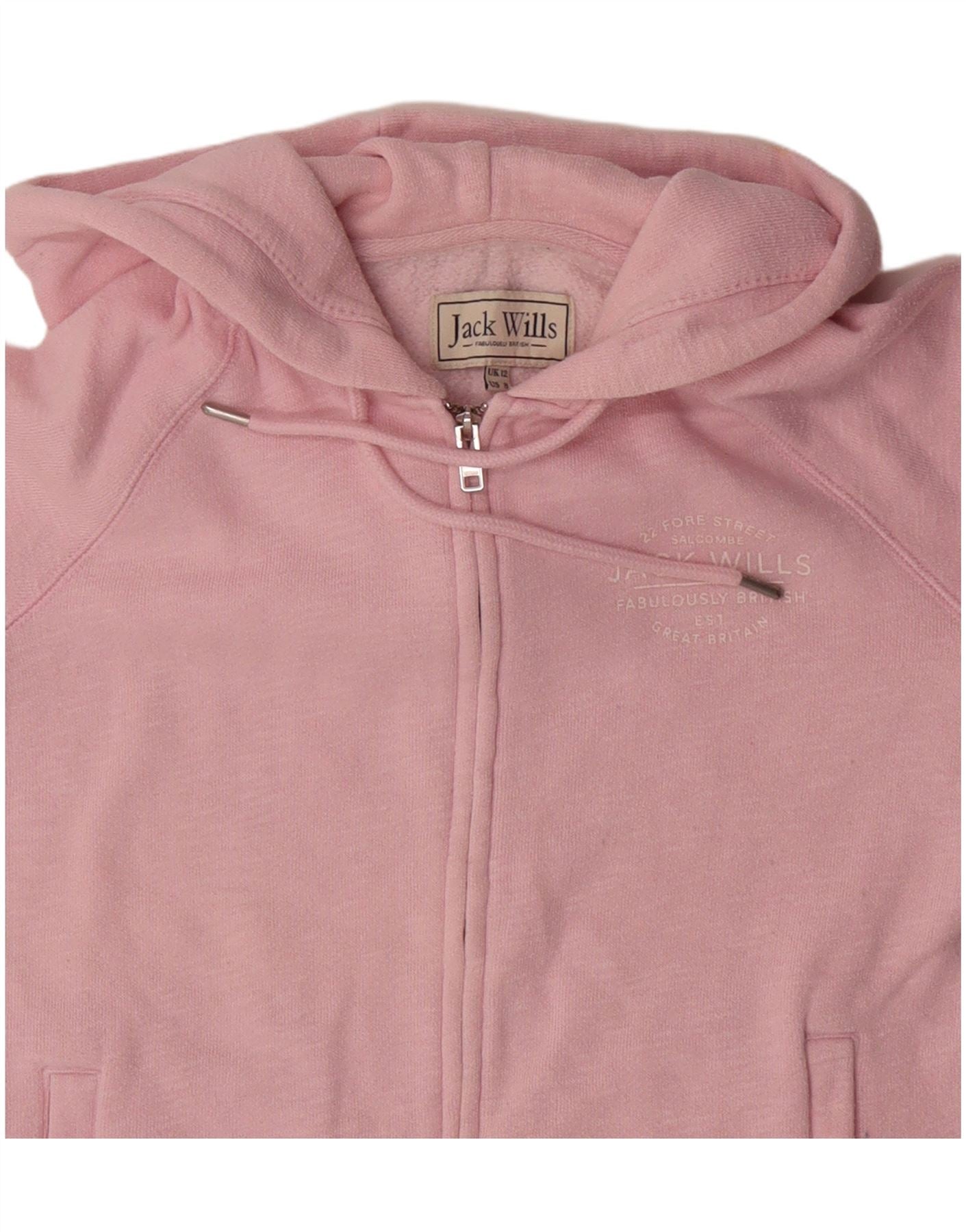 Jack Wills Womens Zip Hoodie Sweater UK 12 Medium Pink Cotton