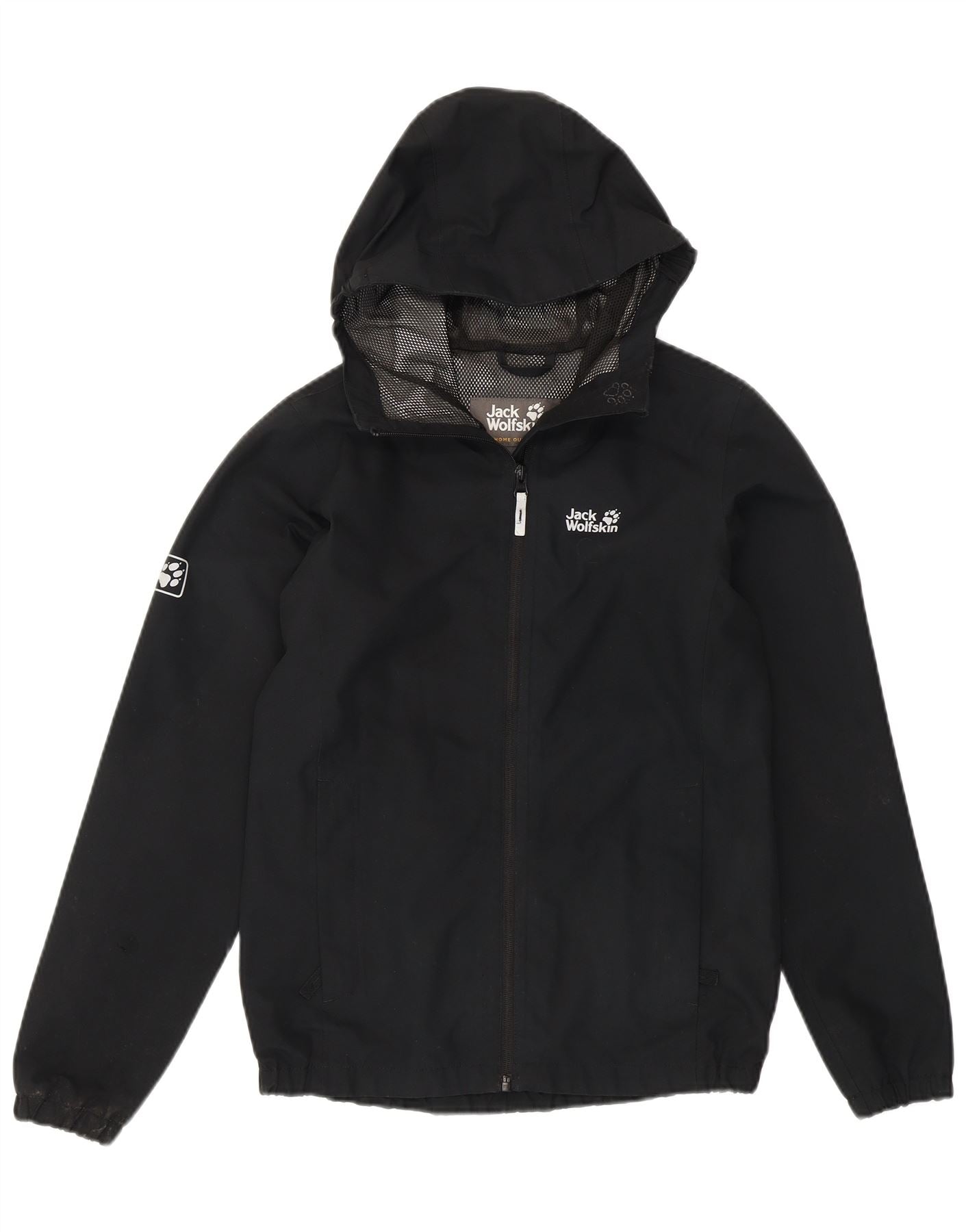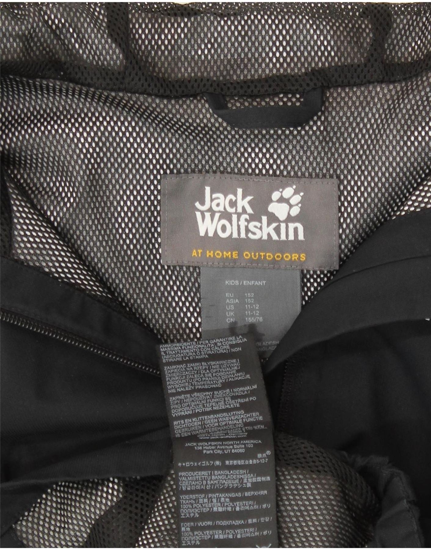 Jack Wolfskin Boys Graphic Hooded Rain Jacket 11-12 Years Black Polyester