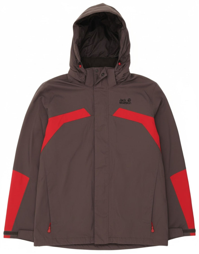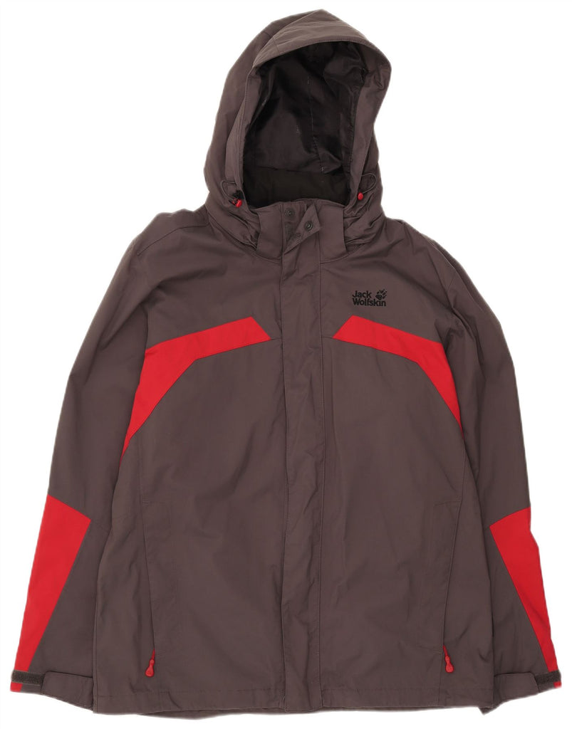 JACK WOLFSKIN Mens Hooded Rain Jacket UK 36/38 Medium Grey Colourblock