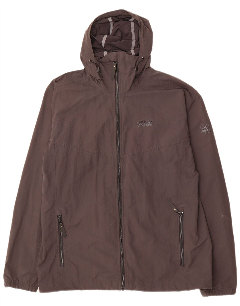 JACK WOLFSKIN Mens Hooded Rain Jacket UK 40/42 Large Grey Polyamide