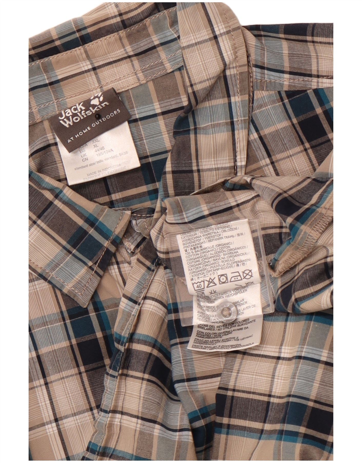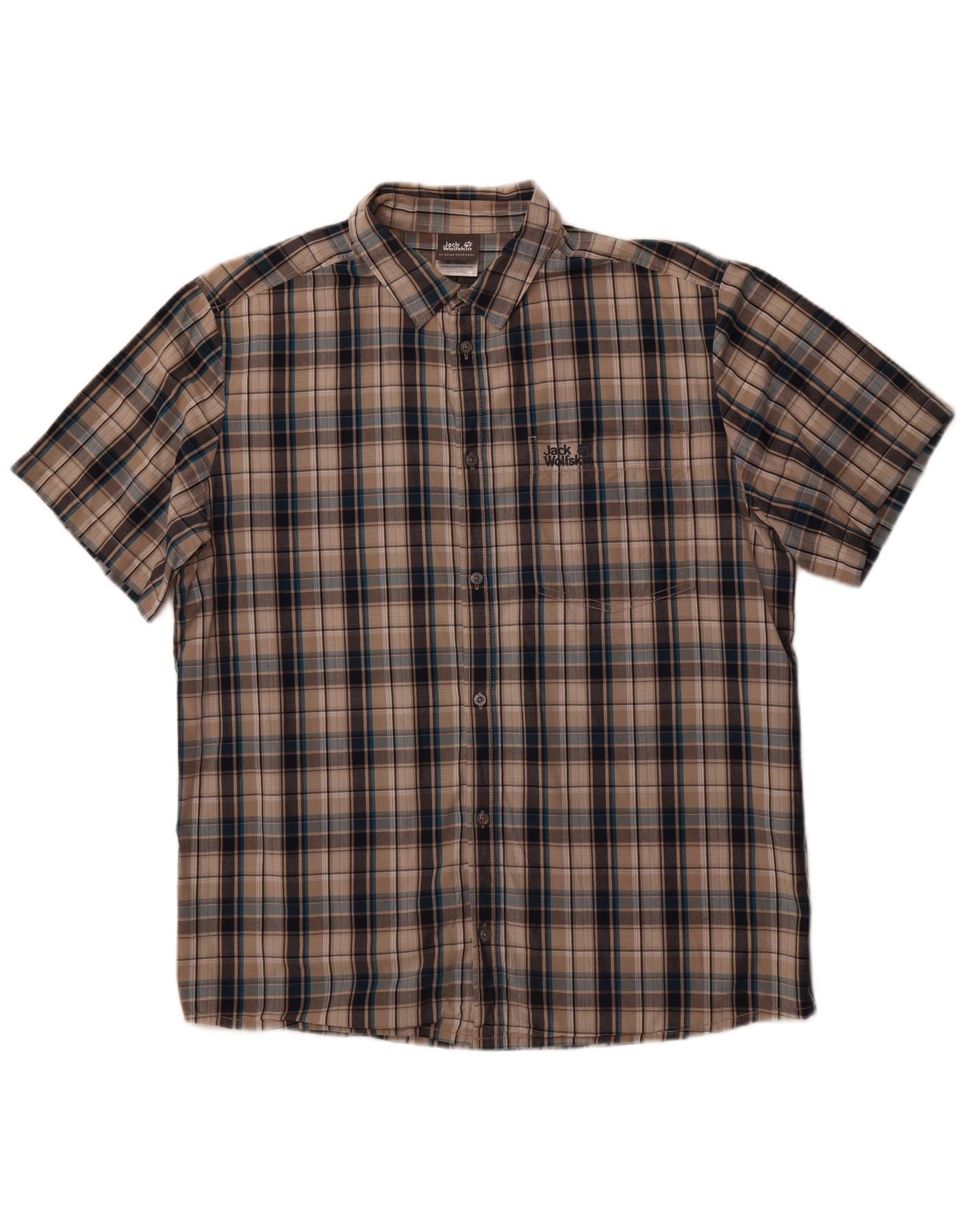 JACK WOLFSKIN Mens Short Sleeve Shirt Size 44/46 XL Grey Check Cotton