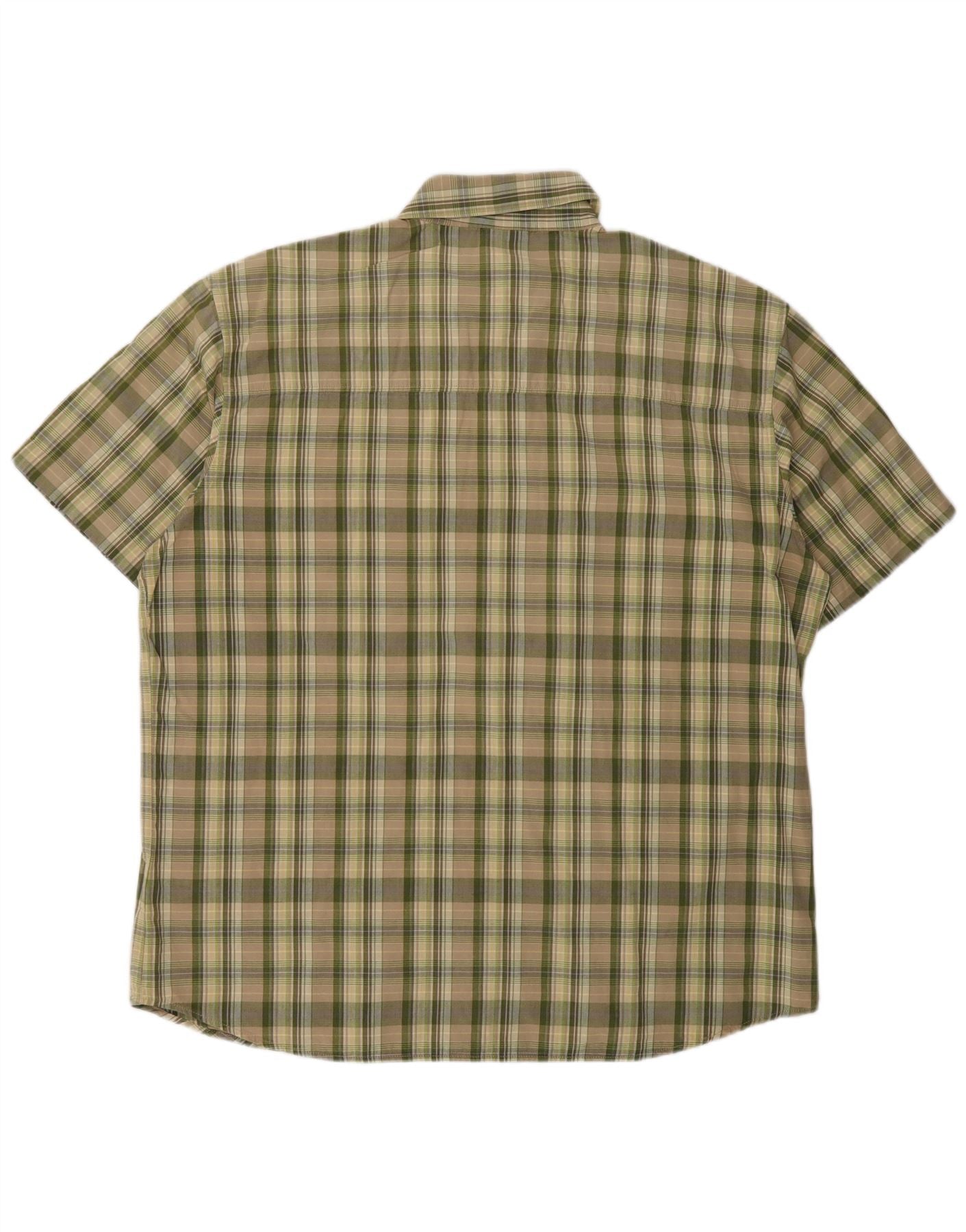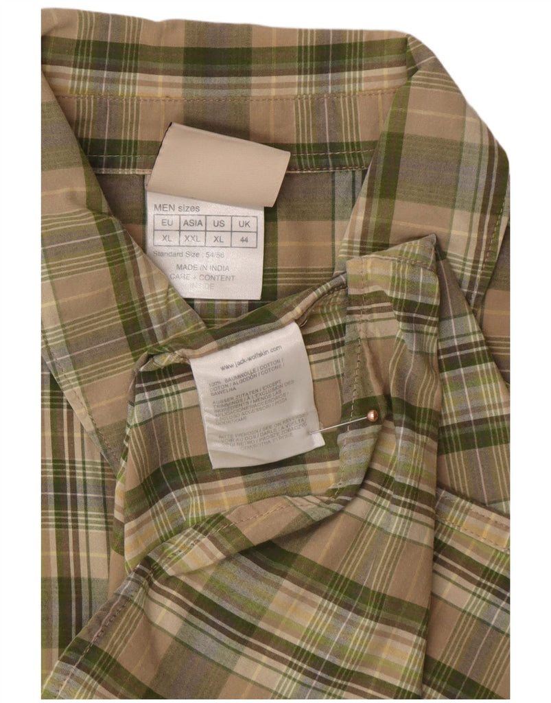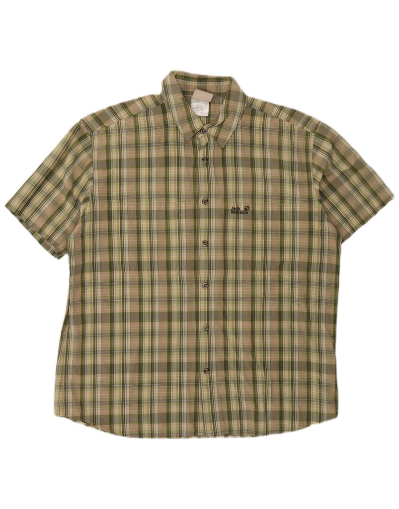 JACK WOLFSKIN Mens Short Sleeve Shirt UK 44 XL Green Check Cotton