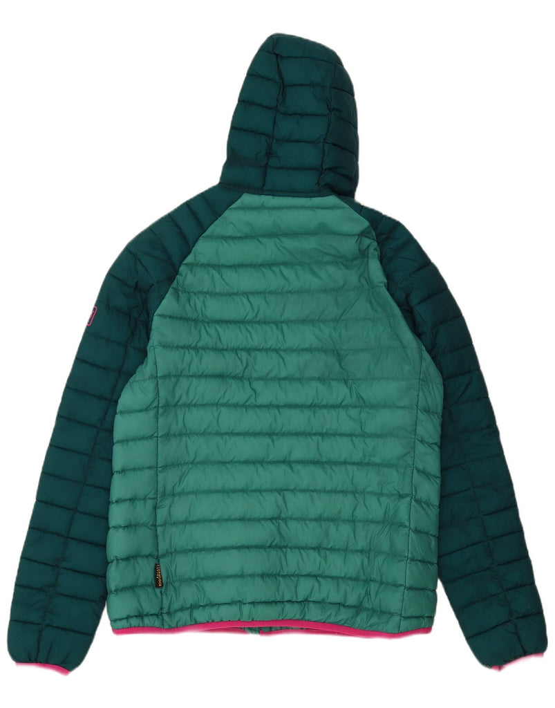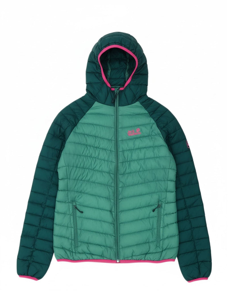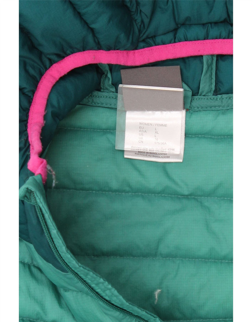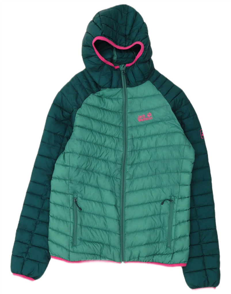 JACK WOLFSKIN Womens Hooded Padded Jacket UK 16 Large Green Colourblock