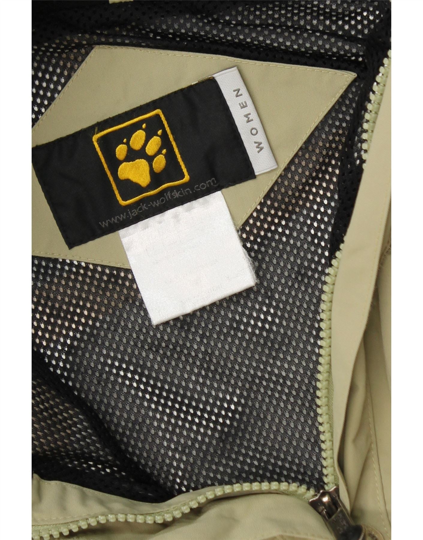 JACK WOLFSKIN Womens Hooded Rain Jacket UK 12 Medium Green Colourblock