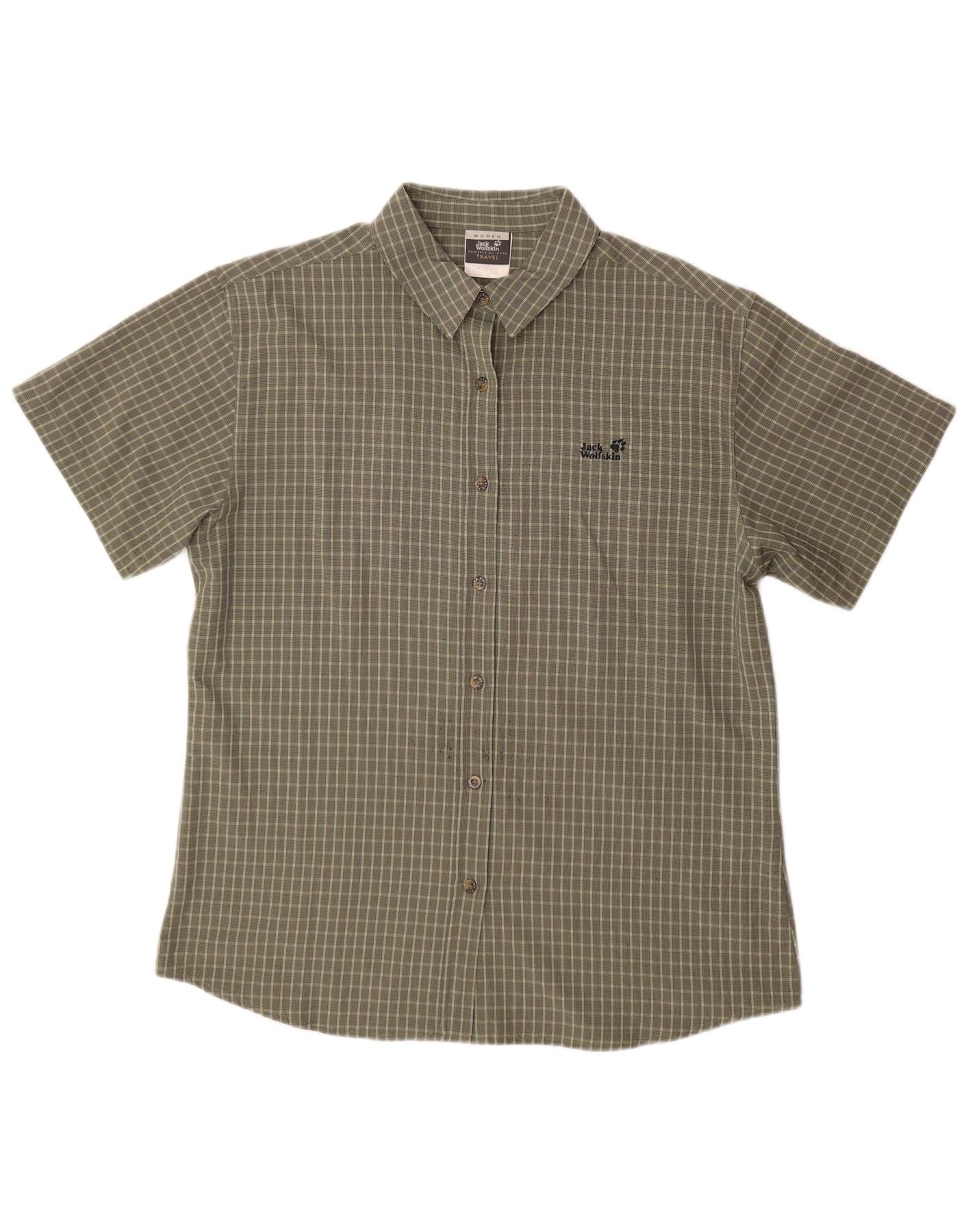 JACK WOLFSKIN Womens Short Sleeve Shirt UK 18 XL Khaki Check Polyester