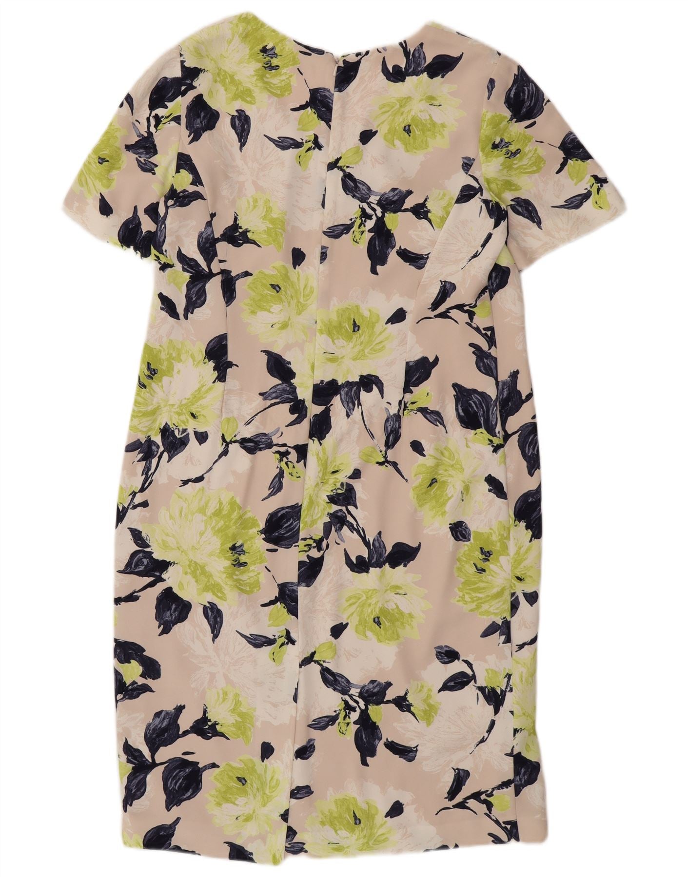JACQUES VERT Womens Short Sleeves Sheath Dress UK 12 Medium Beige Floral