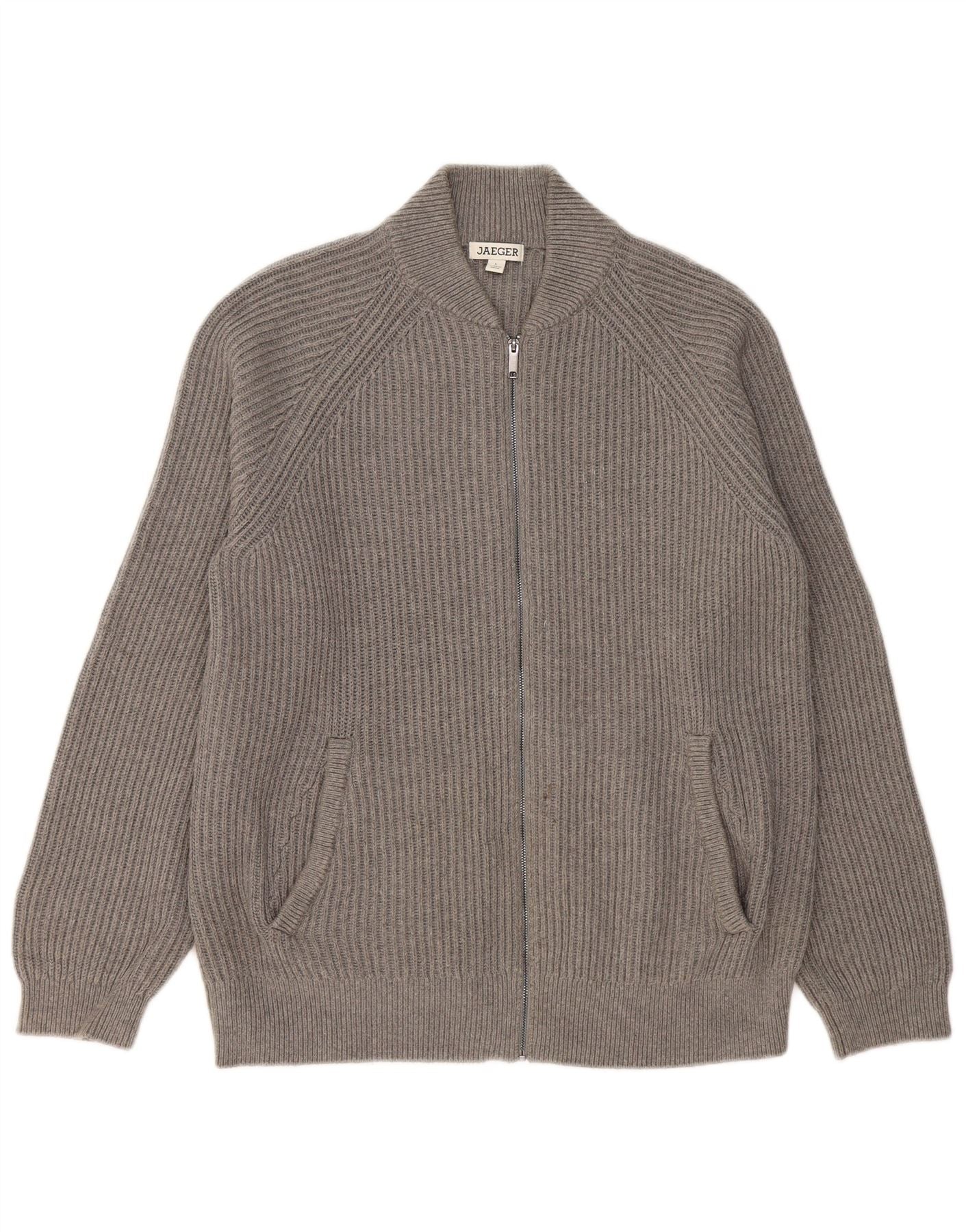 JAEGER Mens Cardigan Sweater Large Grey Cotton