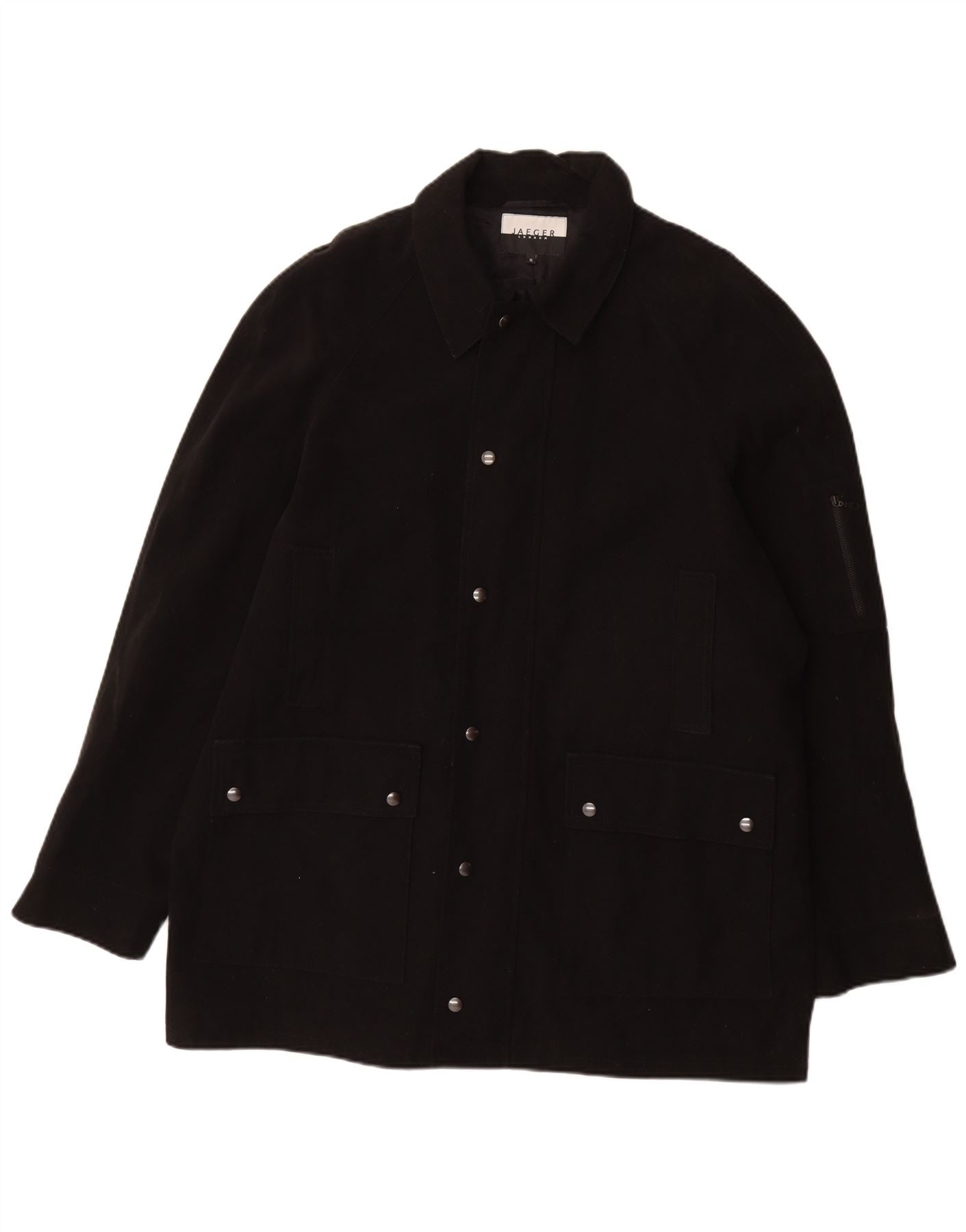Jaeger Mens Overcoat UK 42 XL Black Cotton