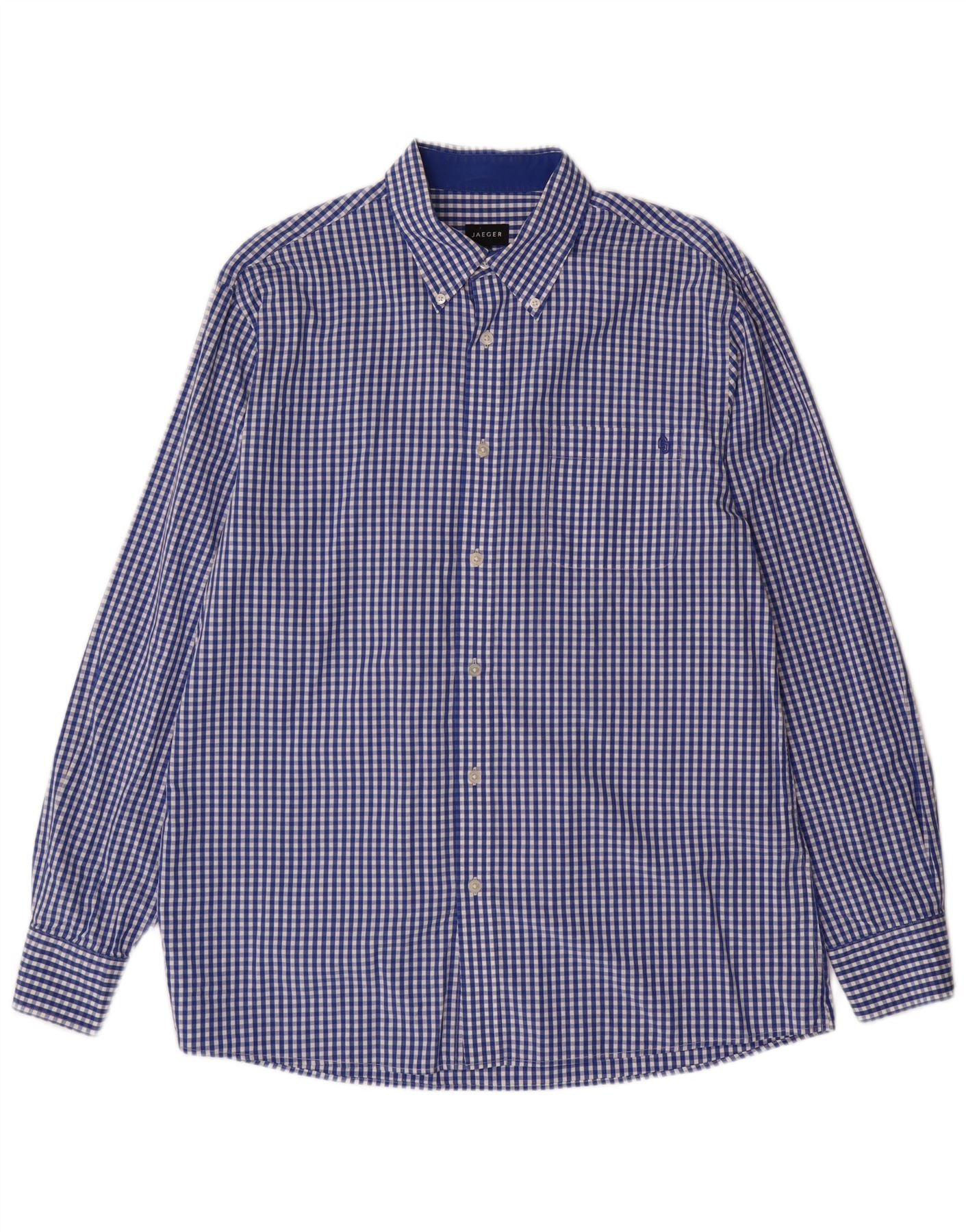 Jaeger Mens Shirt Large Blue Gingham Cotton