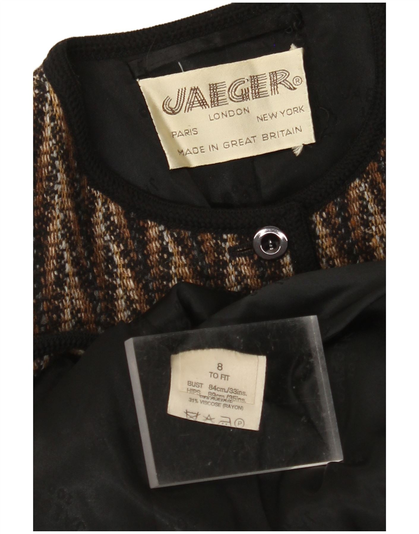 JAEGER Womens 7 button Blazer Jacket UK 8 Small Brown Chevron Wool