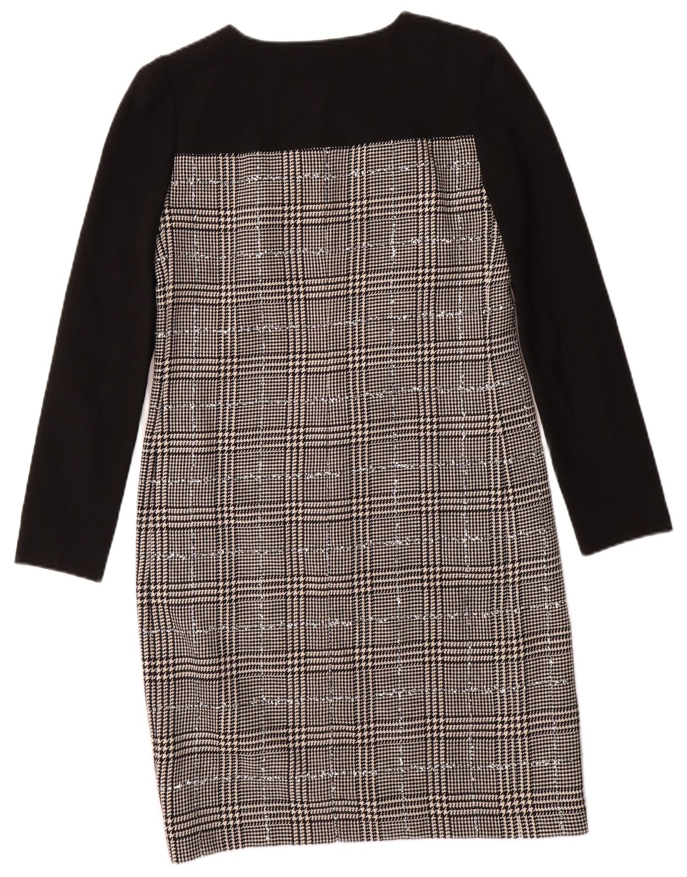 JAEGER Womens Long Sleeve Sheath Dress UK 8 Small Black Houndstooth Wool